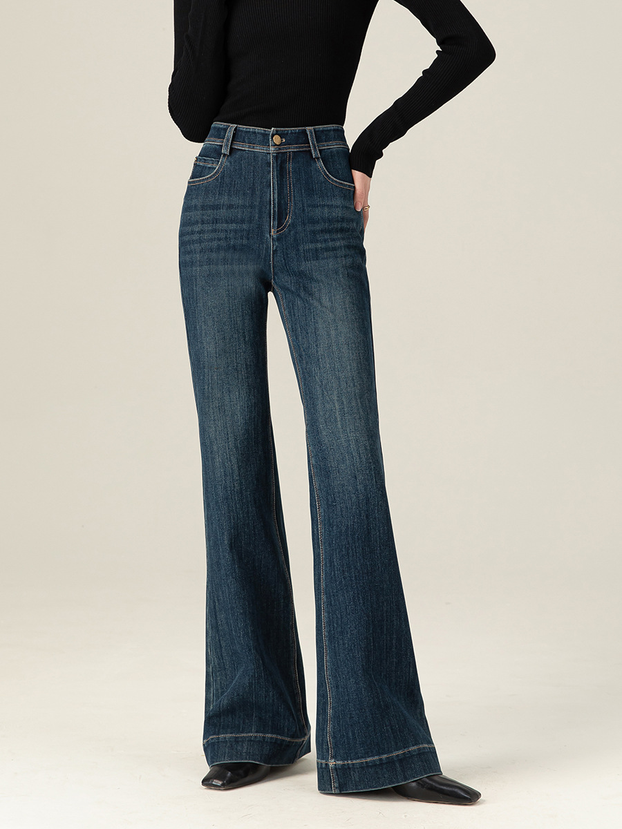 신거 텐셀 아메리칸 스타일 플레어 진 여성용 2026년 봄 신상품 작은 사이즈 약간 플레어 바지 레트로 신축성