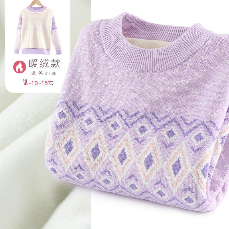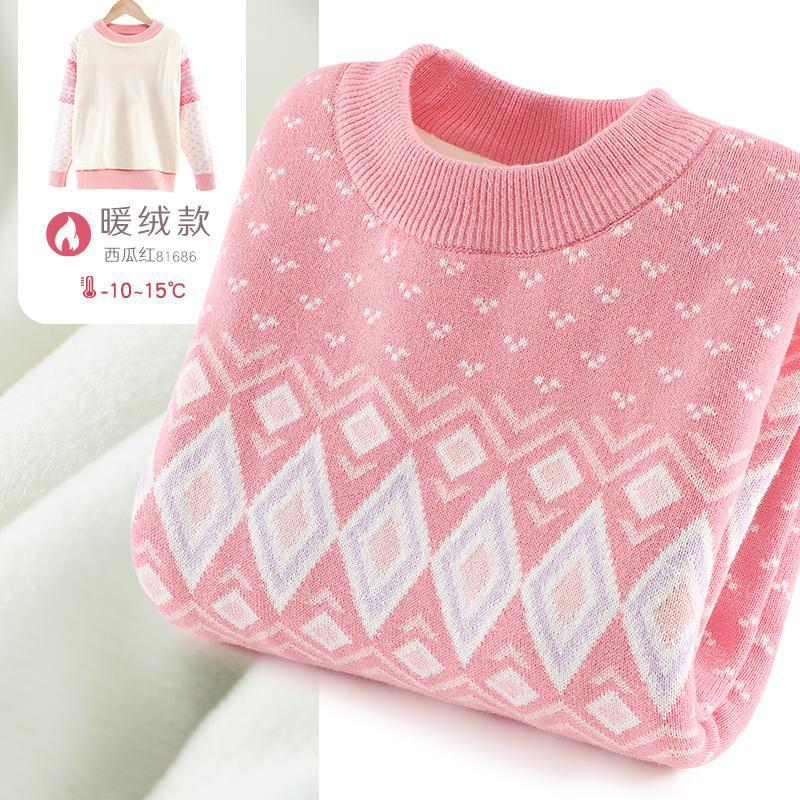 여아용 스웨터 아동용 베이스 셔츠 2025 가을 겨울 중대형 아동용 플리스 안감 두꺼운 보온 니트 상의 아동복스토어 가기