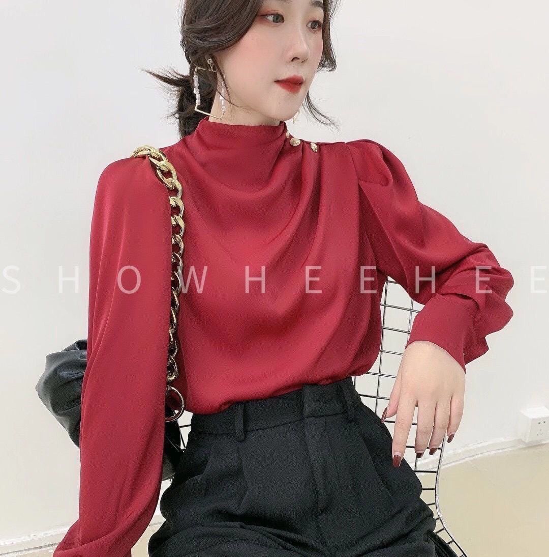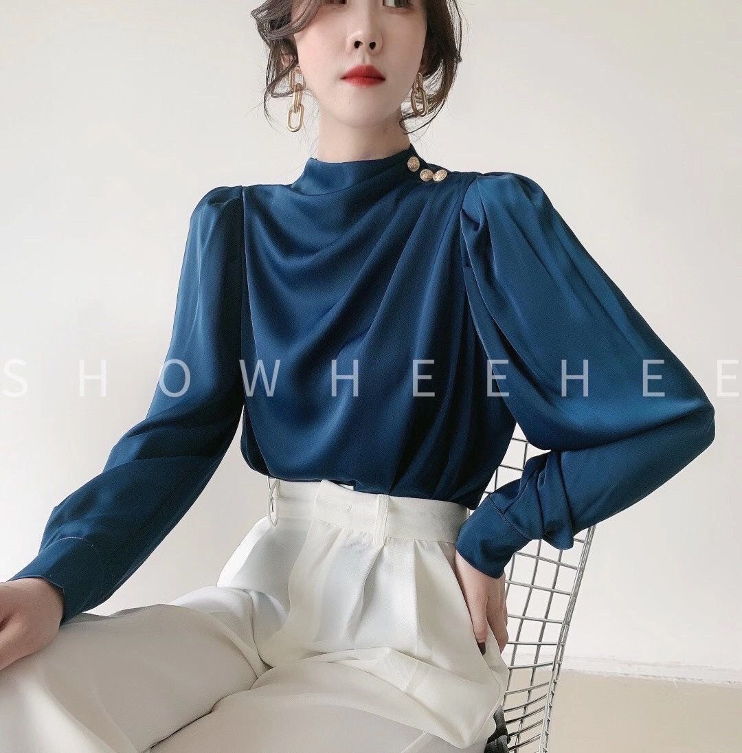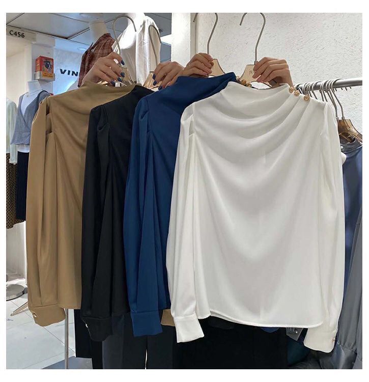 셔츠 여성 디자인 센스 틈새 레트로 홍콩 스타일 셔츠 새틴 Acetic 전문 세련된 패션 칼라 탑 가을