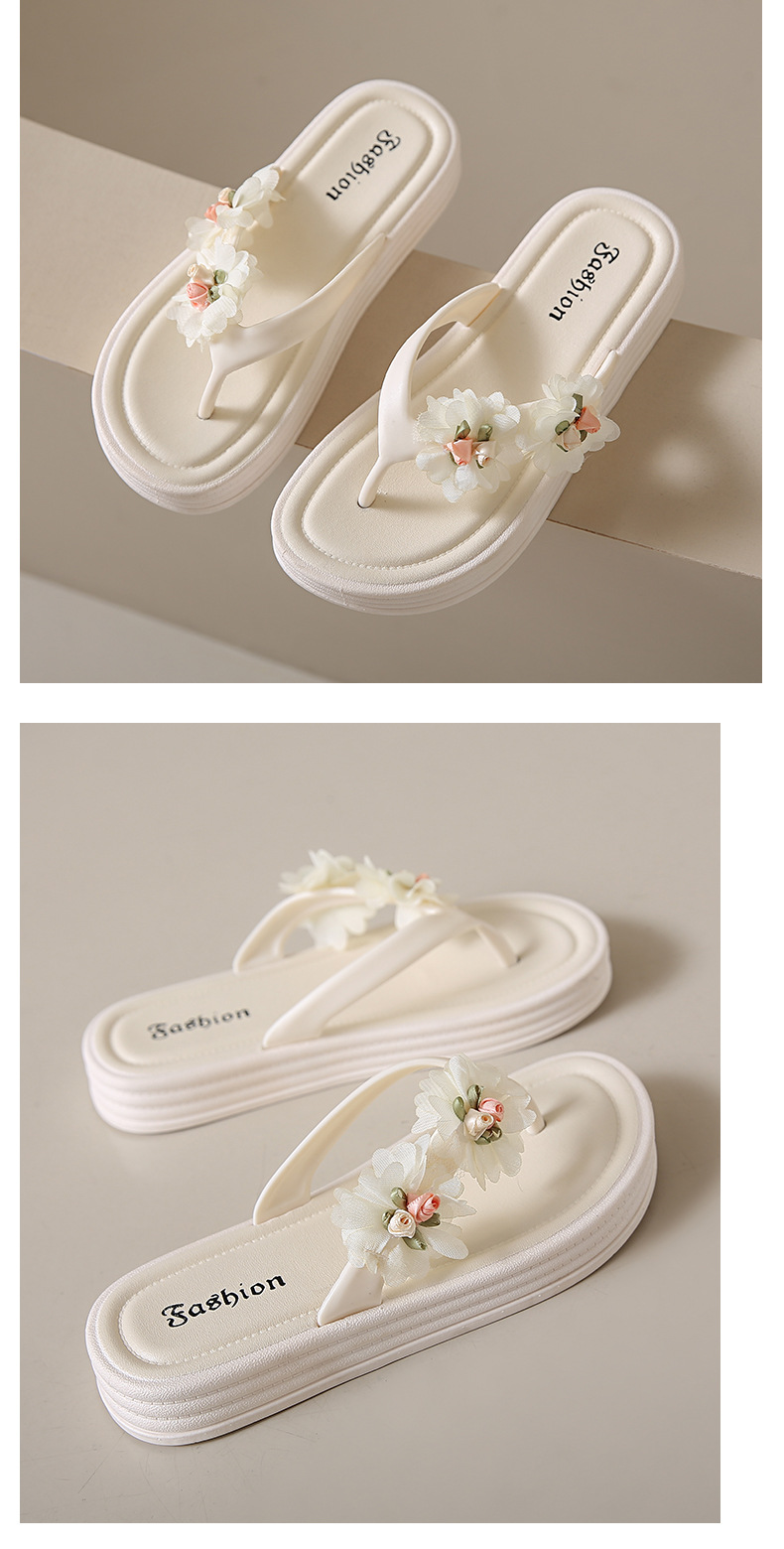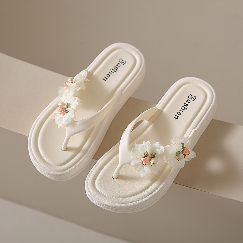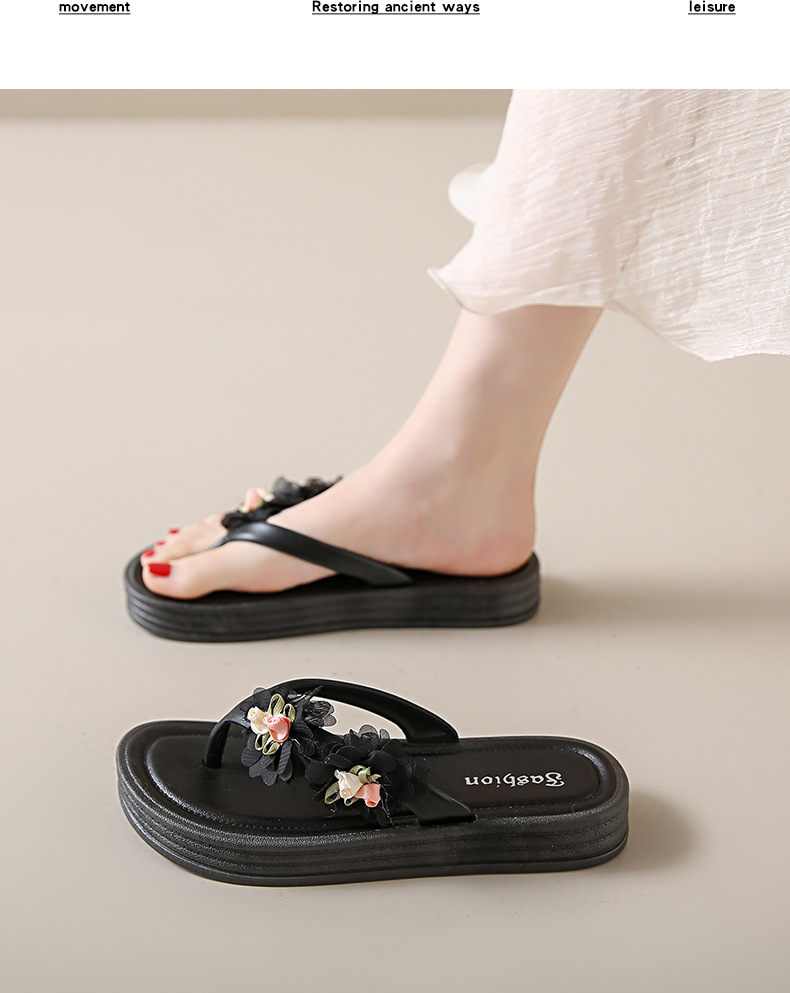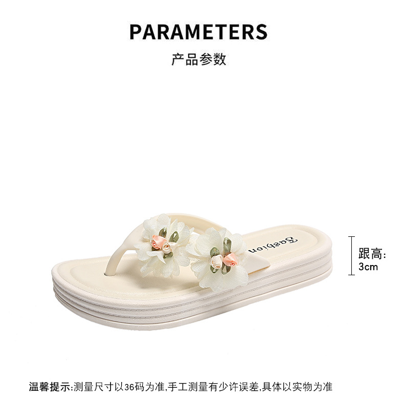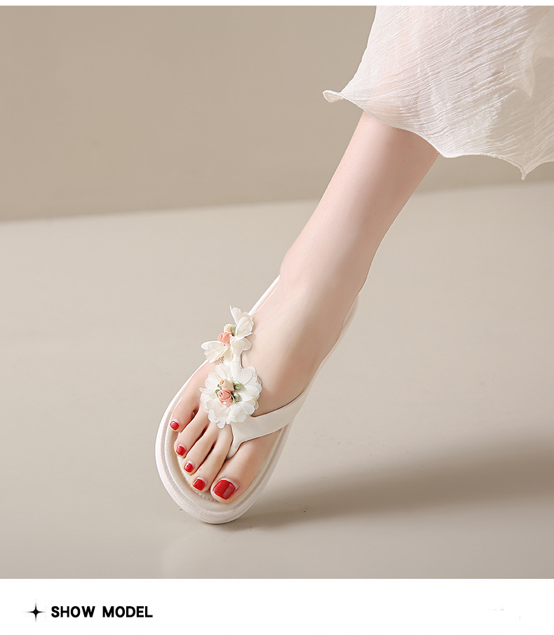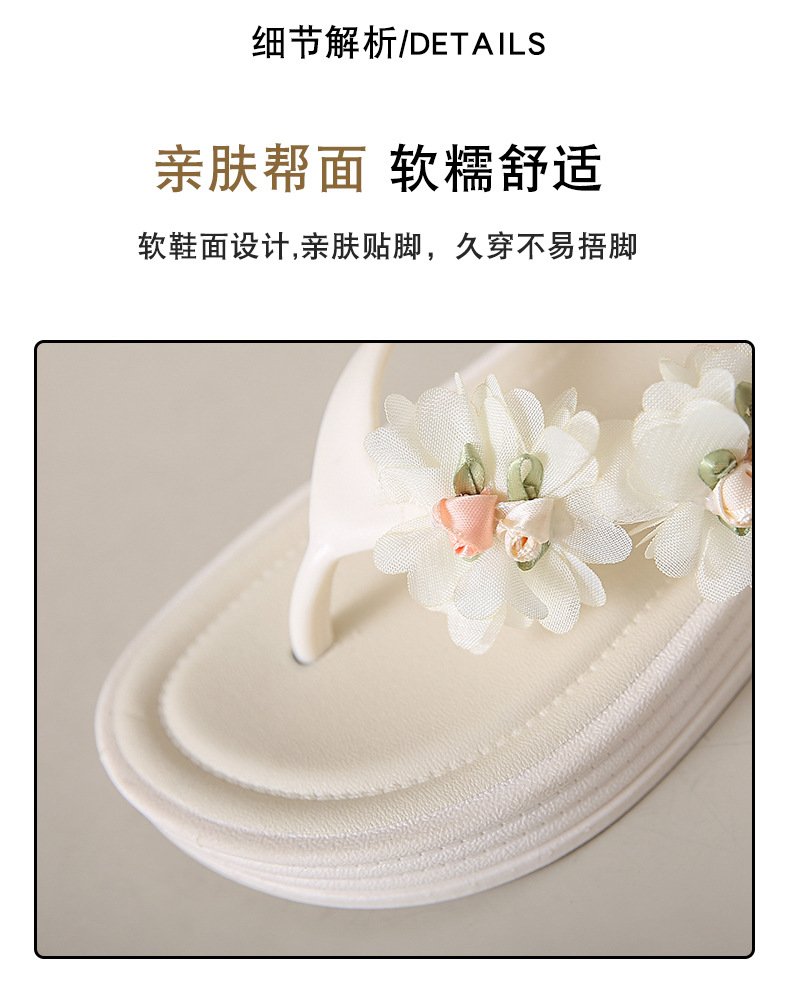 천 꽃 플립 플롭 여성용 여름 의상 착용 방지 미끄럼 플랫 스플린트 샌들 여성용 비치 슈즈