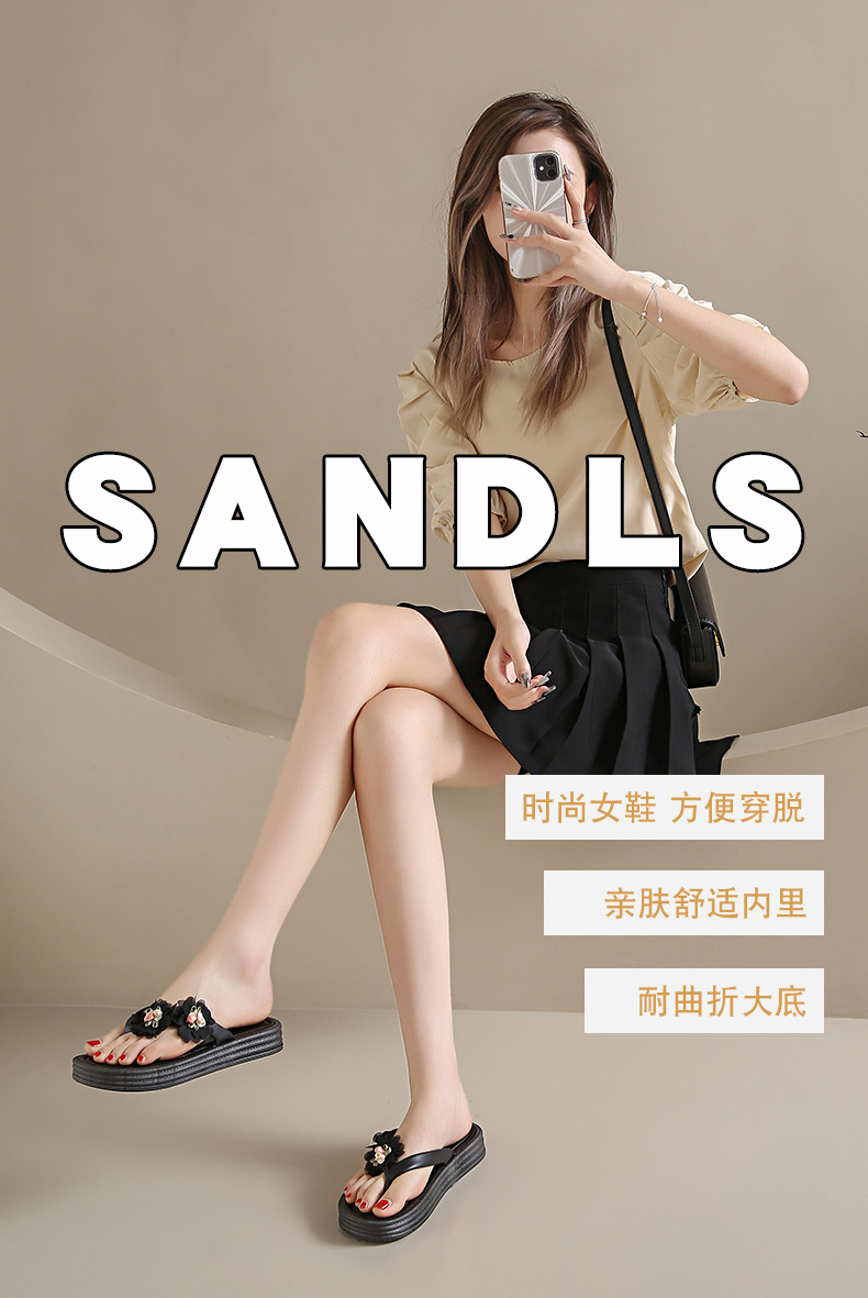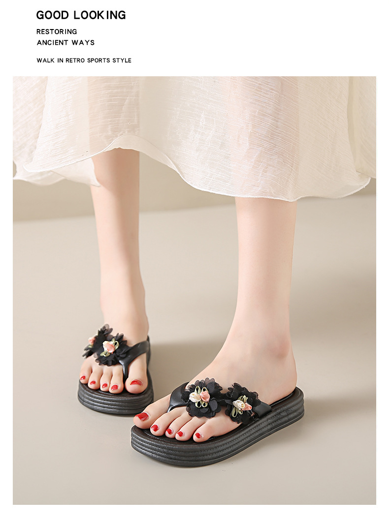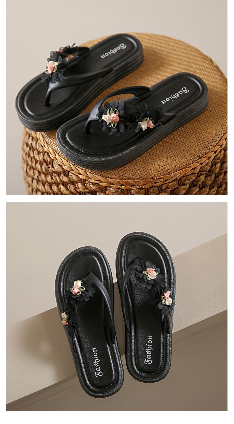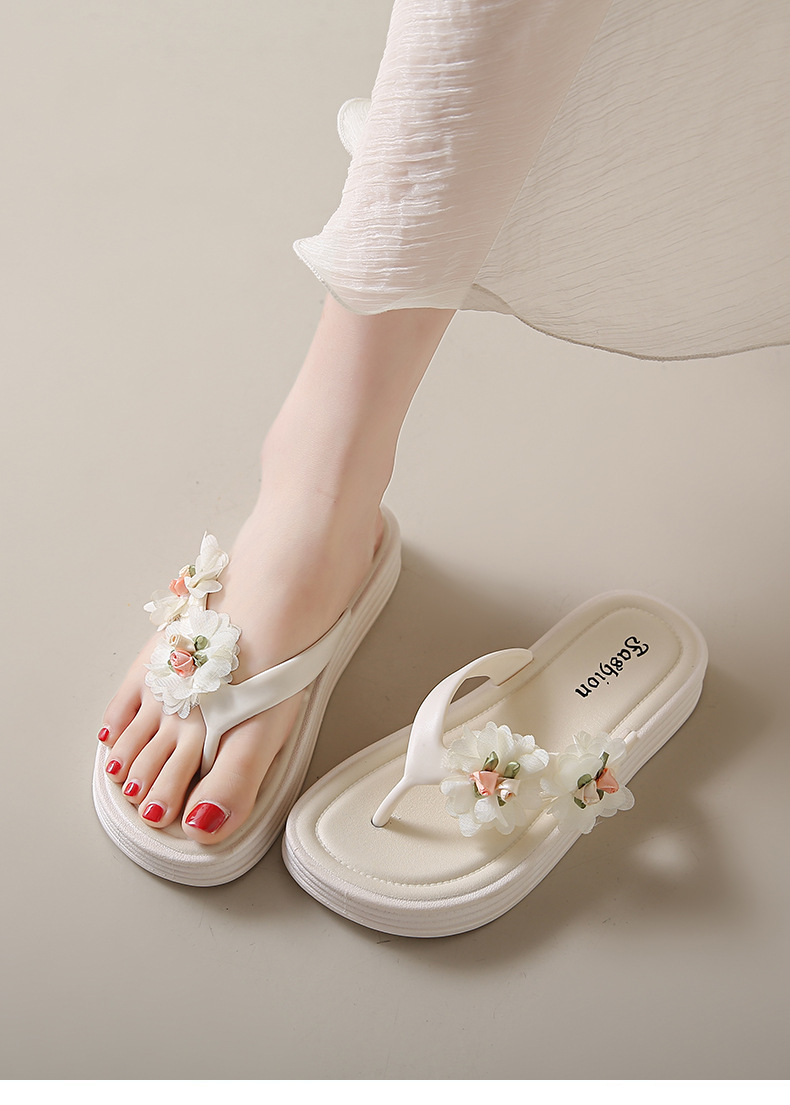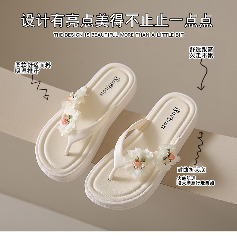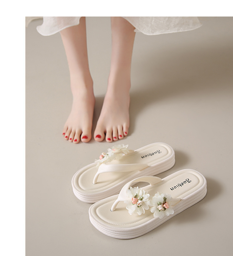 천 꽃 플립 플롭 여성용 여름 의상 착용 방지 미끄럼 플랫 스플린트 샌들 여성용 비치 슈즈