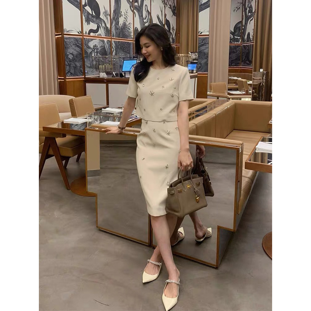 쿠오 아내 세트 여름 원피스 우아한 레이디 여신 팬 라이트 럭셔리 하이 엔드 향기로운 스타일 화이트 스커트 투피스 세트