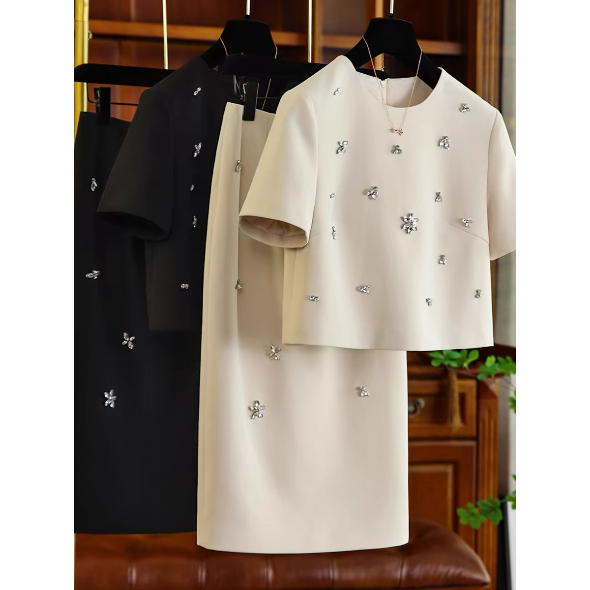 쿠오 아내 세트 여름 원피스 우아한 레이디 여신 팬 라이트 럭셔리 하이 엔드 향기로운 스타일 화이트 스커트 투피스 세트스토어 가기