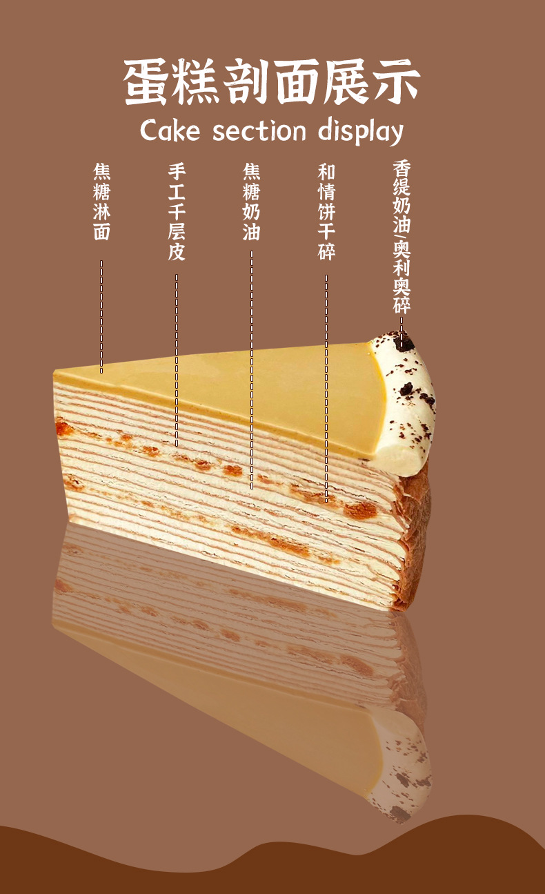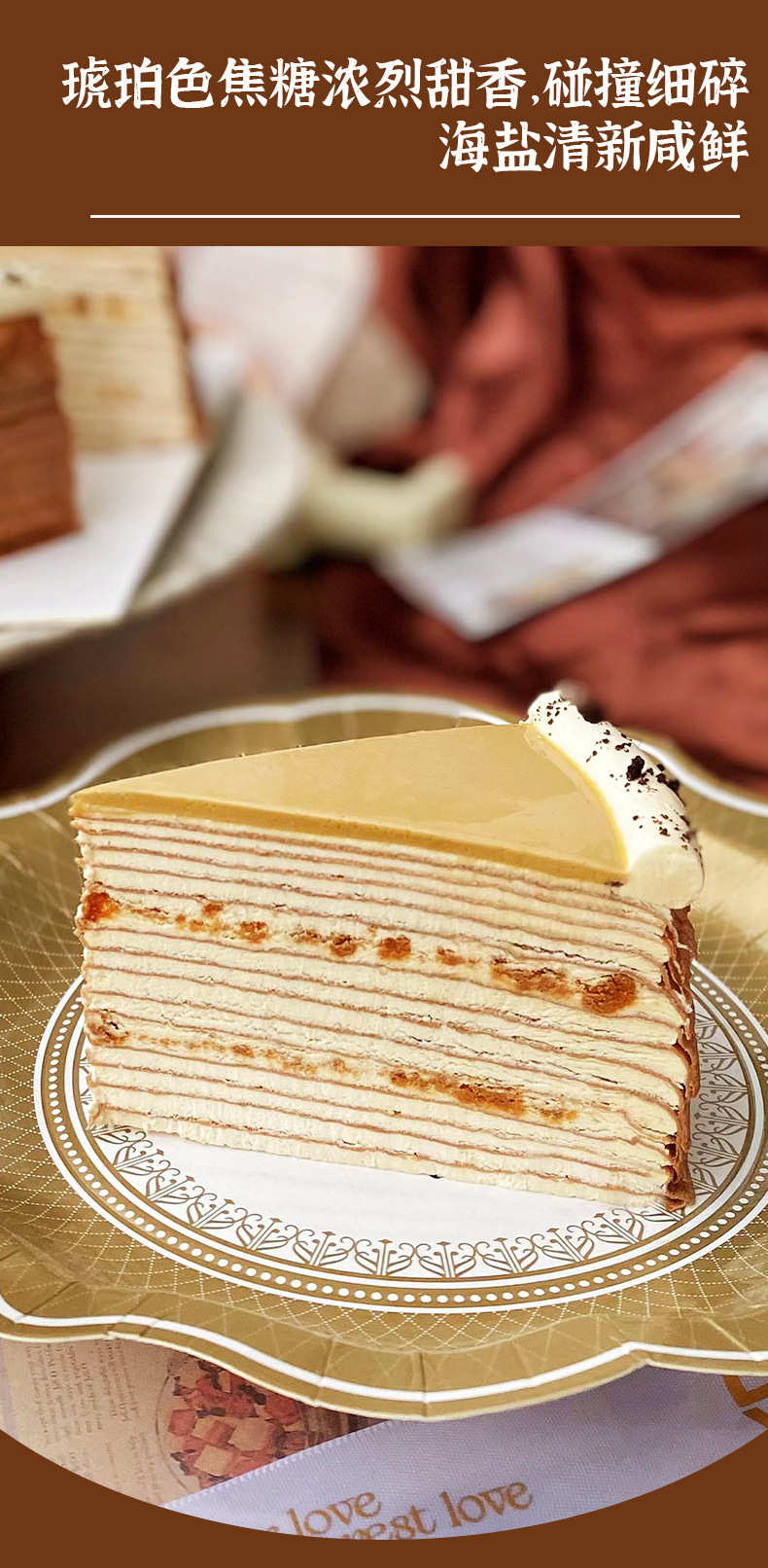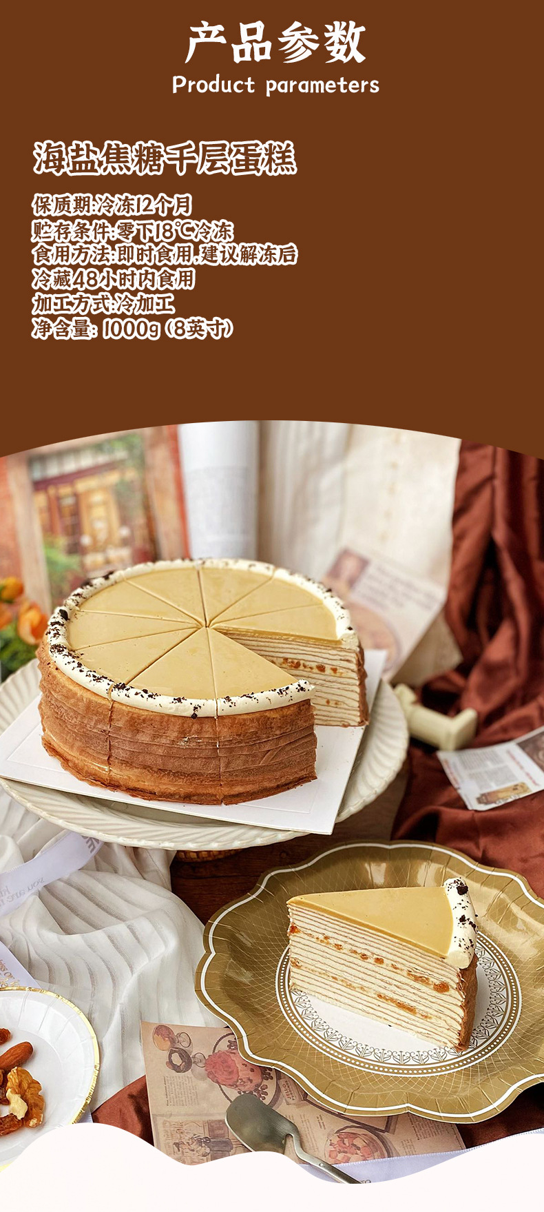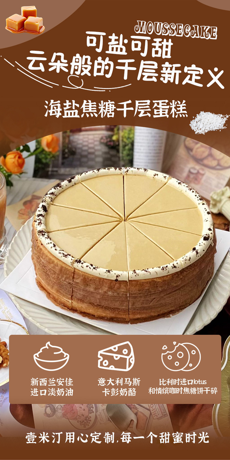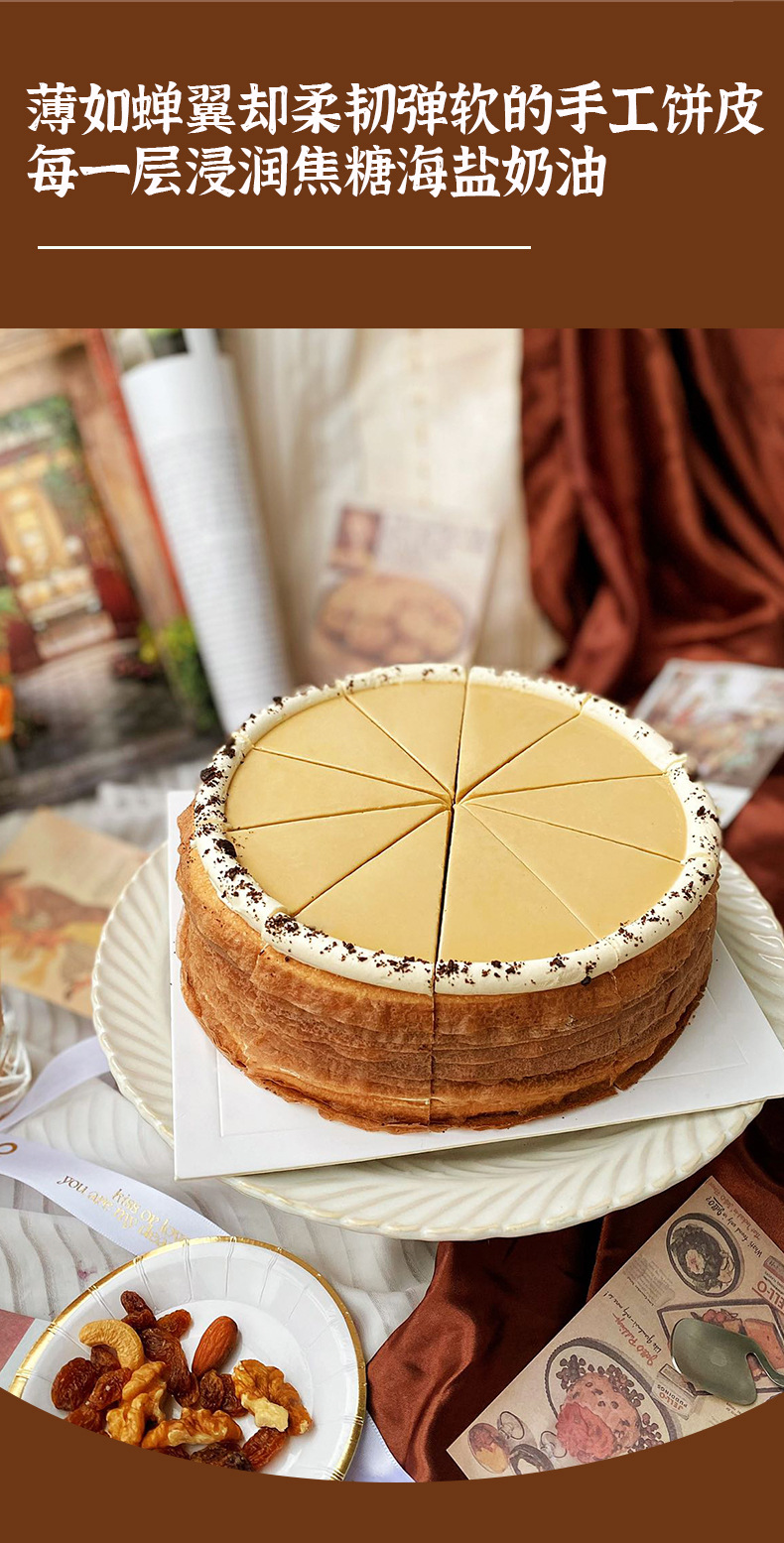 Yimitin 8inch 바다 소금 카라멜 레이어 케이크 도매 냉동 무스 케이크 카페 제품 디저트