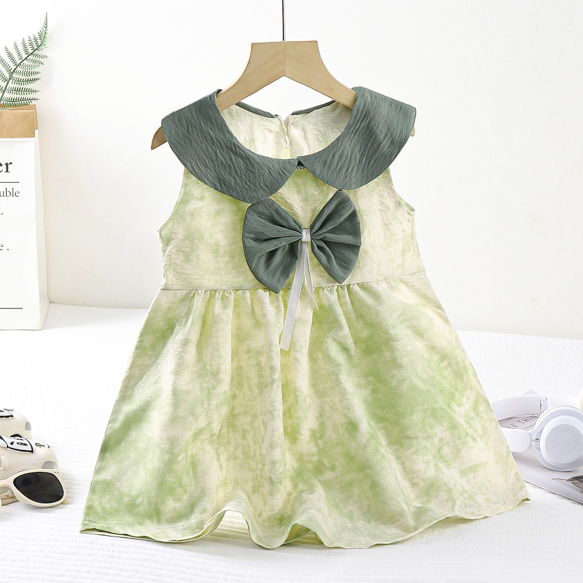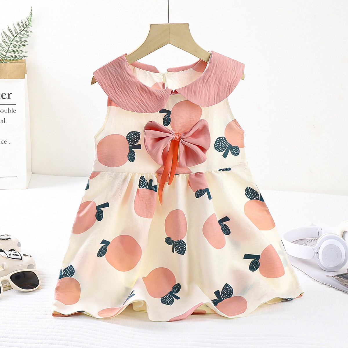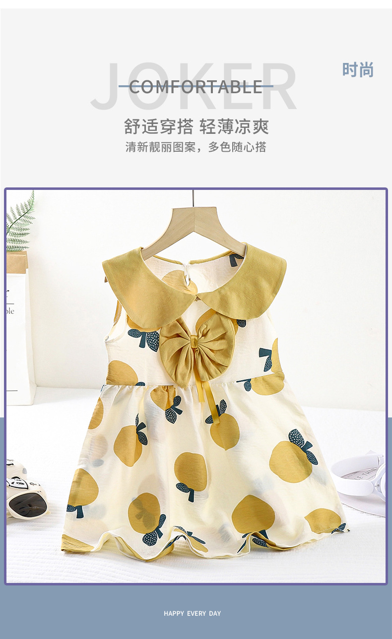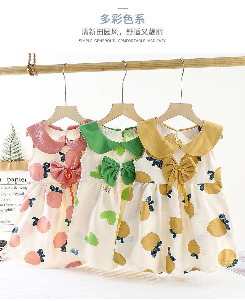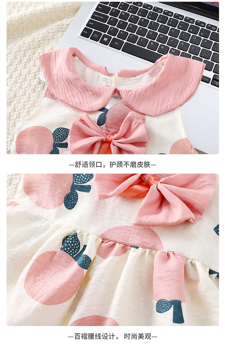 새로운 어린이 구름 면화 원피스 여름 소녀 귀여운 활 공주 원피스 아기 민소매 공주 칼라