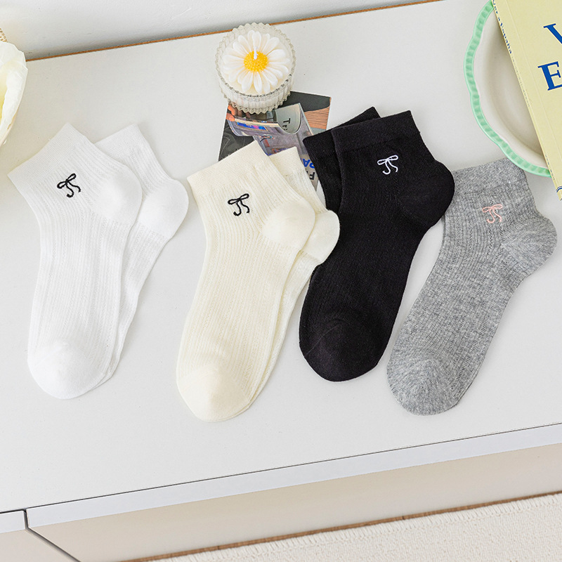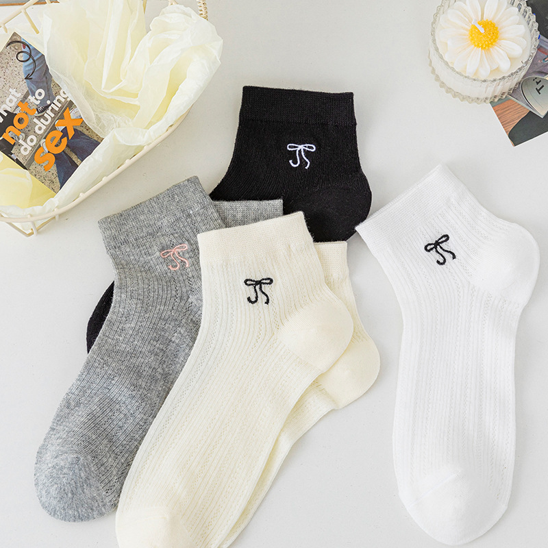 양말 여성 여름 얇은 활 짧은 양말 중공 메쉬 여름 흑백 일본 Miu 통기성 탈취제 양말