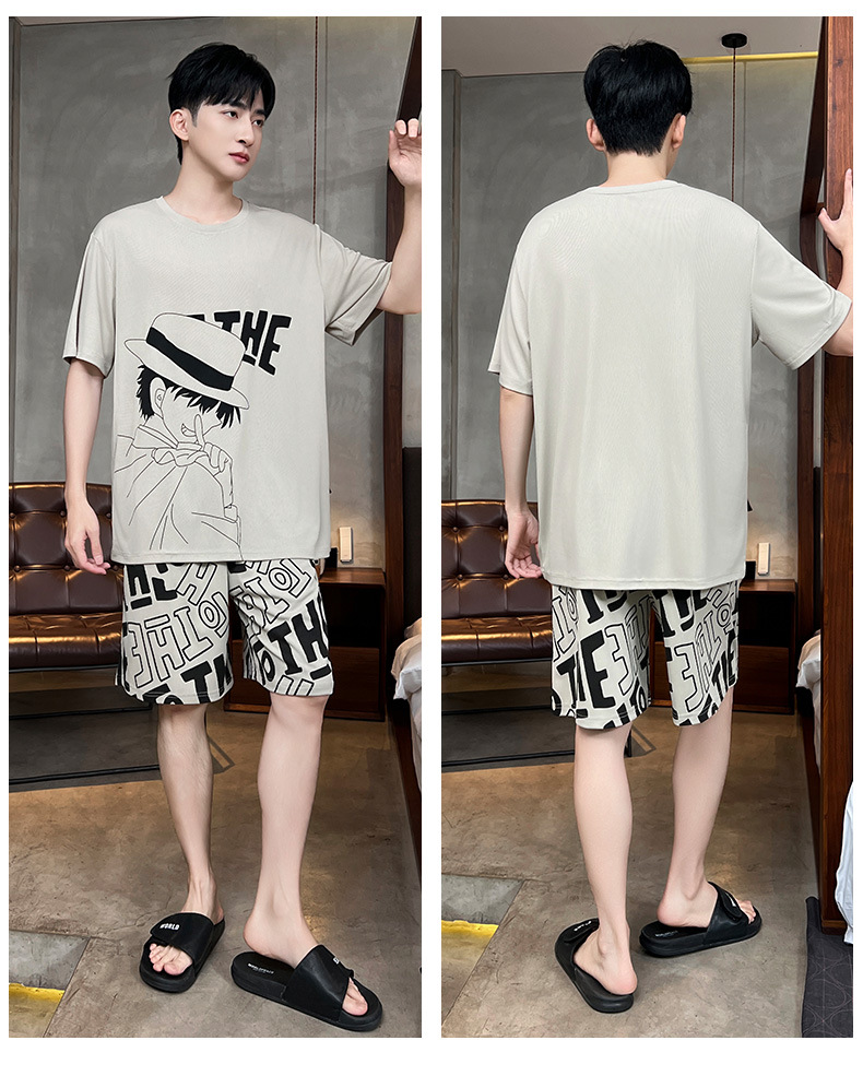 TR7030 외팔 반바지 착용 남성용 홈 옷 2 피스 세트 여름 느슨한 둥근 목 간단한 느슨한스토어 가기