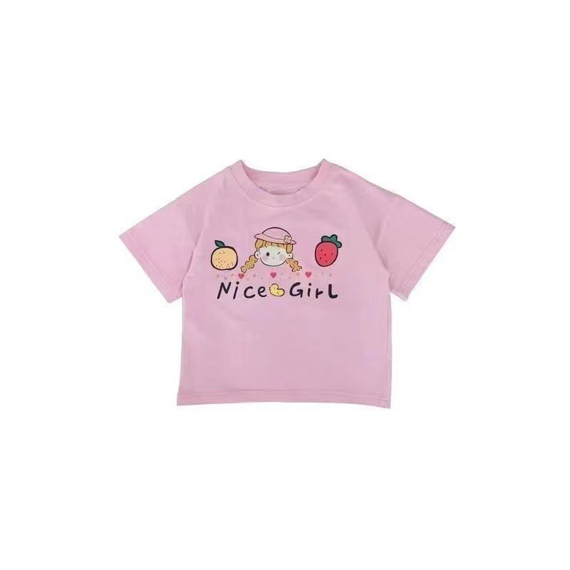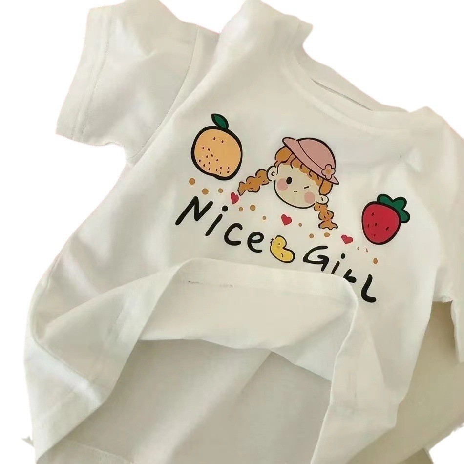 여자 얇은 반소매 여성 아기의 여름 새 티셔츠 순면 어린이 한국식 만화 느슨한 탑 반팔 셔츠