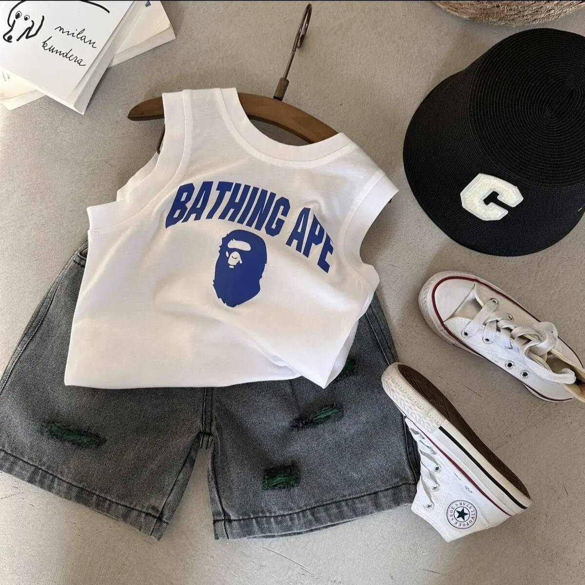 한국 스타일 소년 조끼 2024 년 여름 뉴 보이즈 민소매 얇은 아우터 착용 아기의 허리 코트 민소매 만화 탑 트렌디
