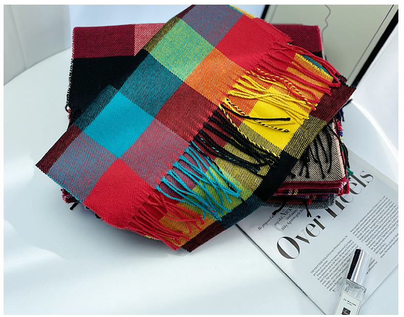 새로운 격자 무늬 스카프 여성의 겨울 하이 엔드 모헤어 모방 캐시미어 스카프 학생 올 매치 따뜻한 목도리 스카프스토어 가기