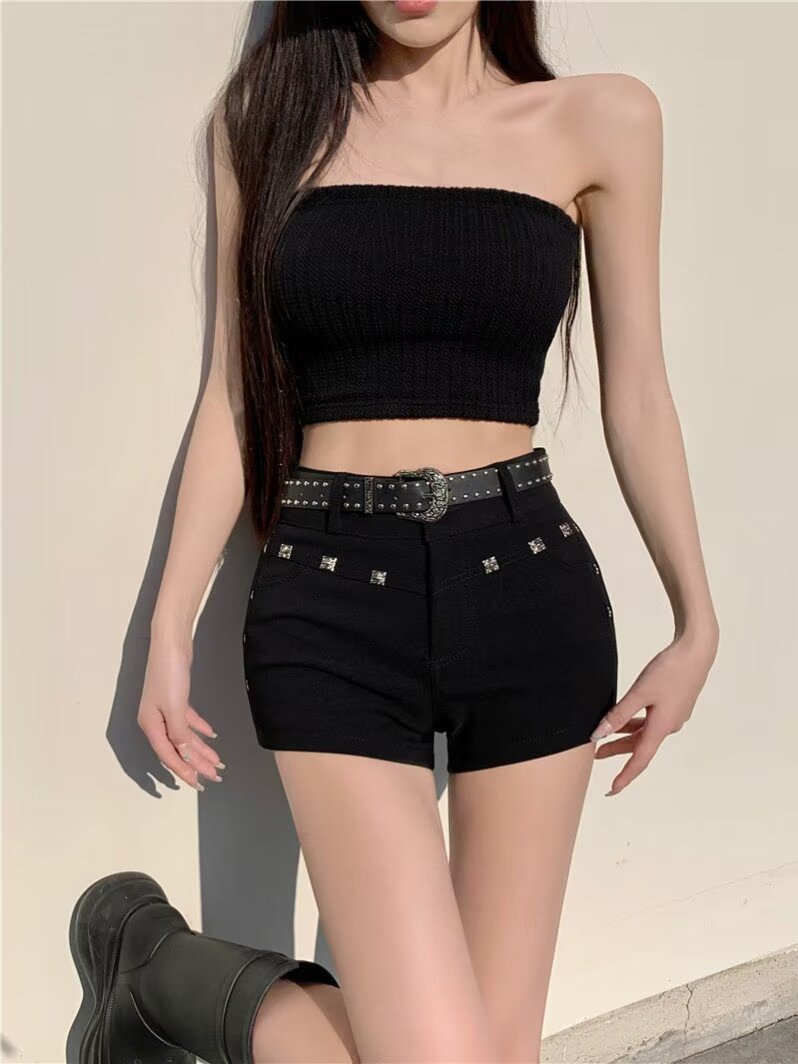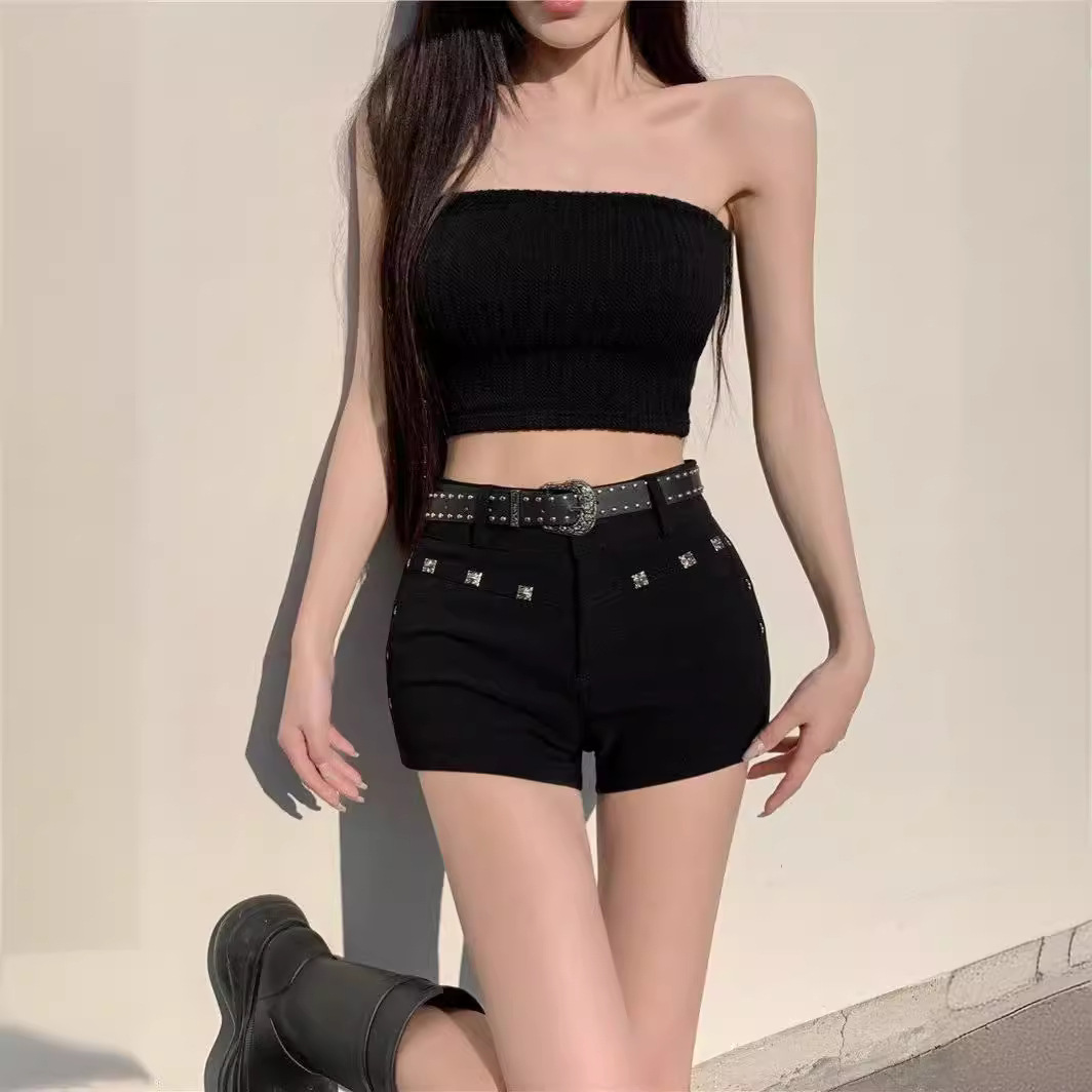 2024 여름 새로운 슬림 하이 허리 반바지 여성용 리벳 디자인 스트레이트 반바지 여성용 슬림 핏 올매치 핫 팬츠