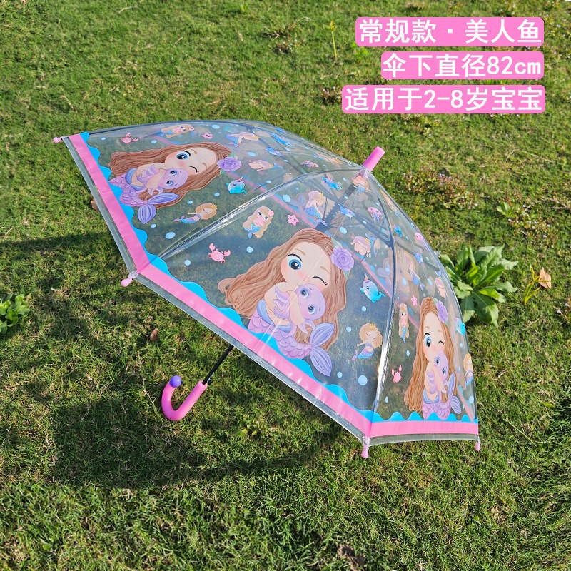 안전 어린이 우산 둥근 반 찌르기 아기 귀여운 만화 비닐 차양 이중 목적 태양 우산
