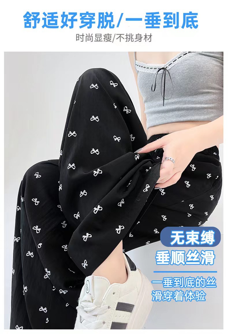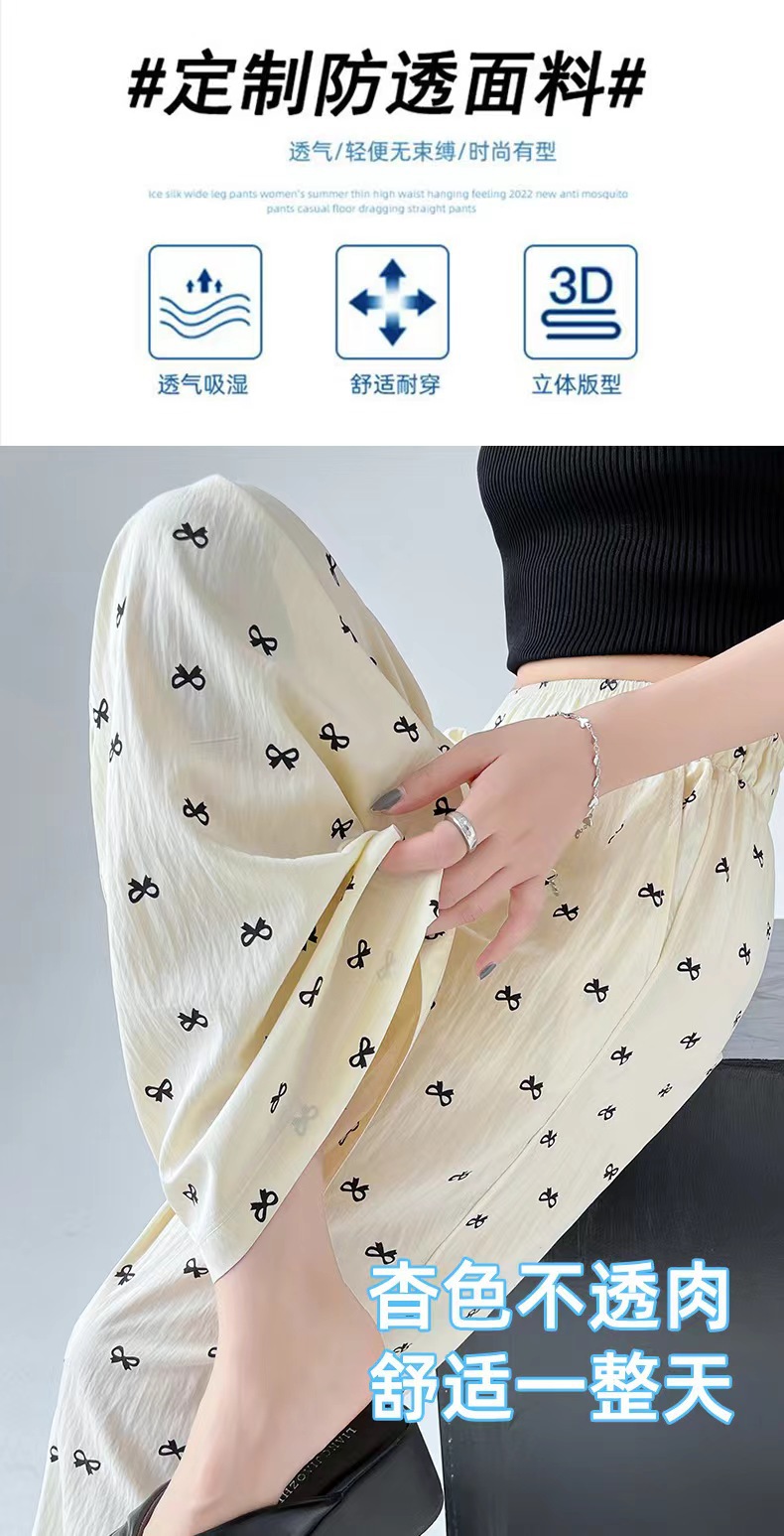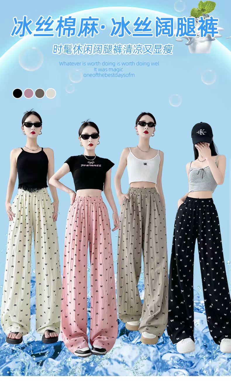 Bowknot 넓은 다리 바지 여성 여름 높은 허리 대두 캐주얼 게으른 얼음 실크 야마모토 바지 면 및 리넨 캐주얼 바지스토어 가기
