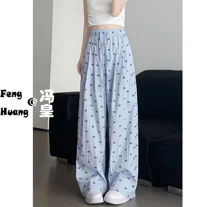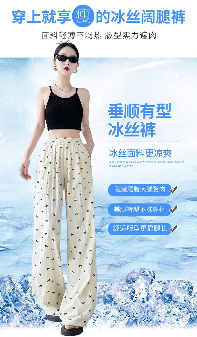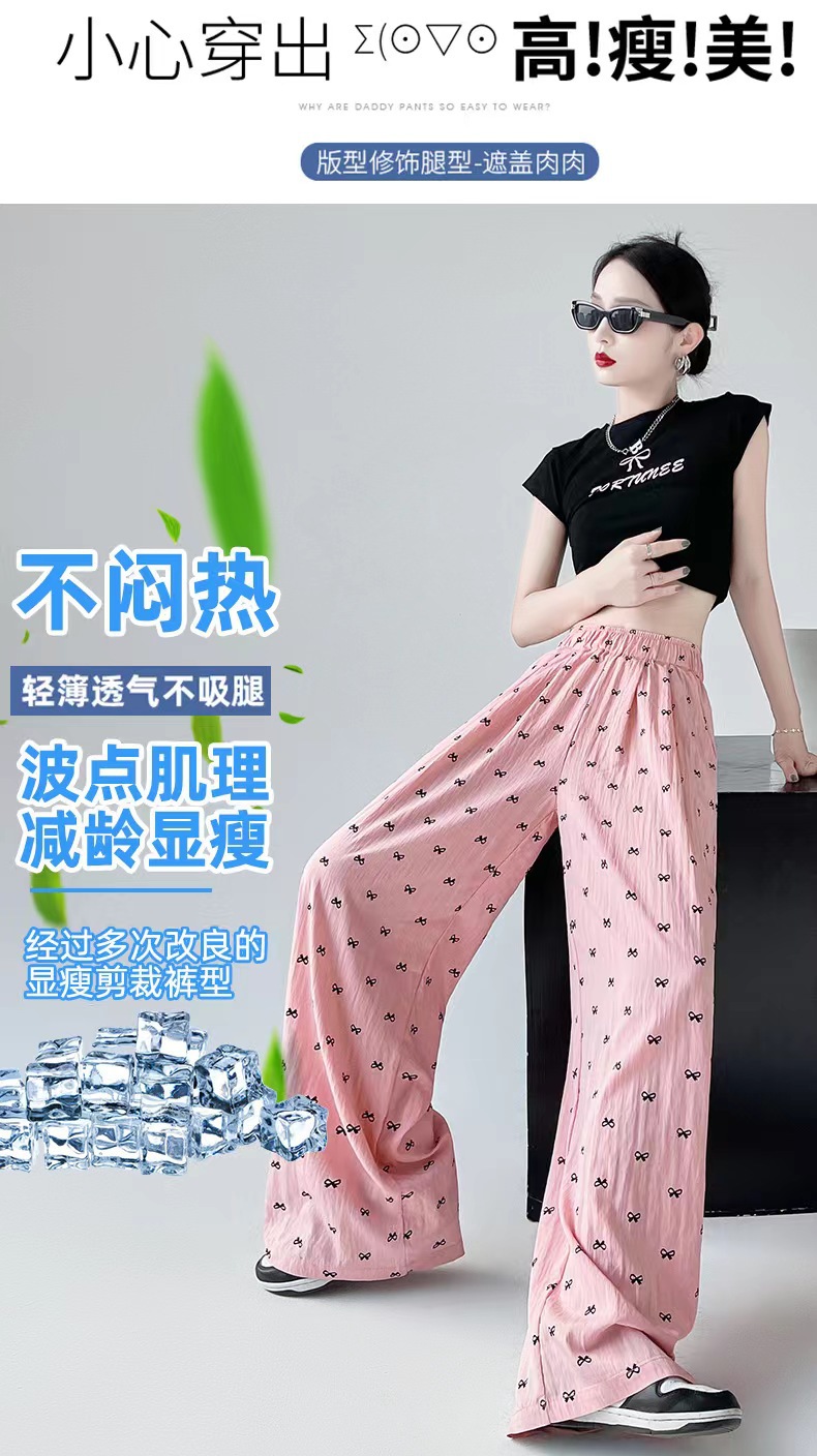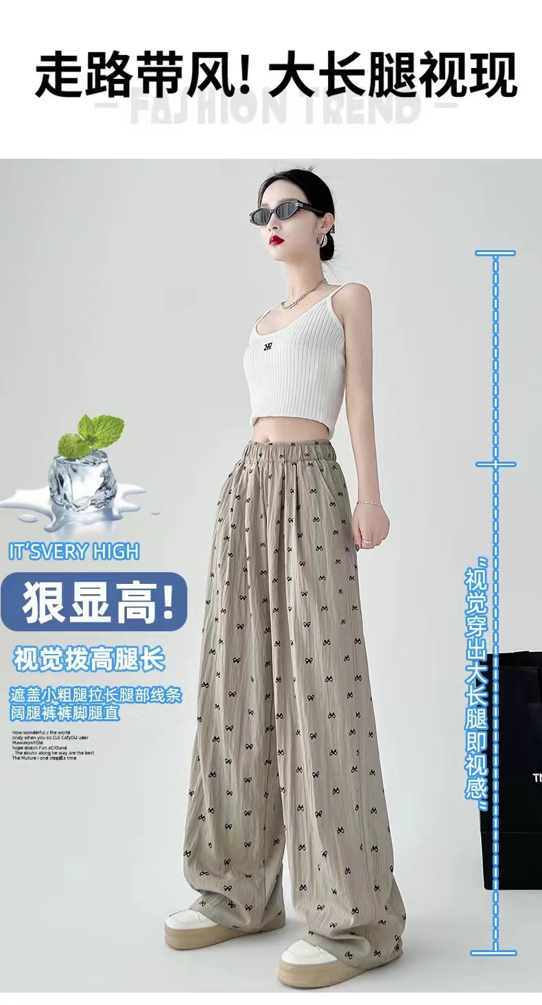 Bowknot 넓은 다리 바지 여성 여름 높은 허리 대두 캐주얼 게으른 얼음 실크 야마모토 바지 면 및 리넨 캐주얼 바지스토어 가기