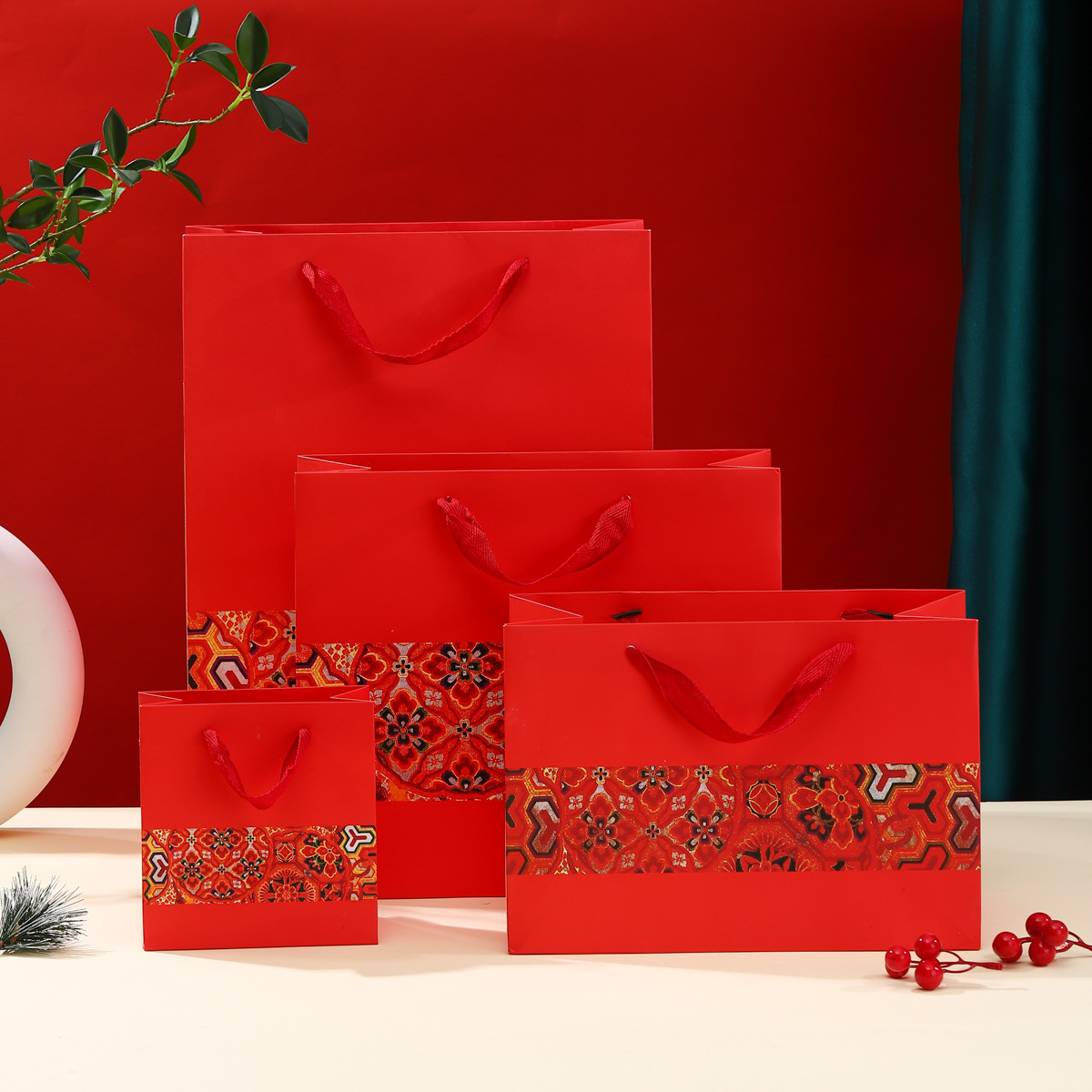 중국 스타일 붉은 축제 결혼식 토트 가방 선물 가방 사전 결혼식 사탕 손 선물 포장 가방 종이 가방 도매