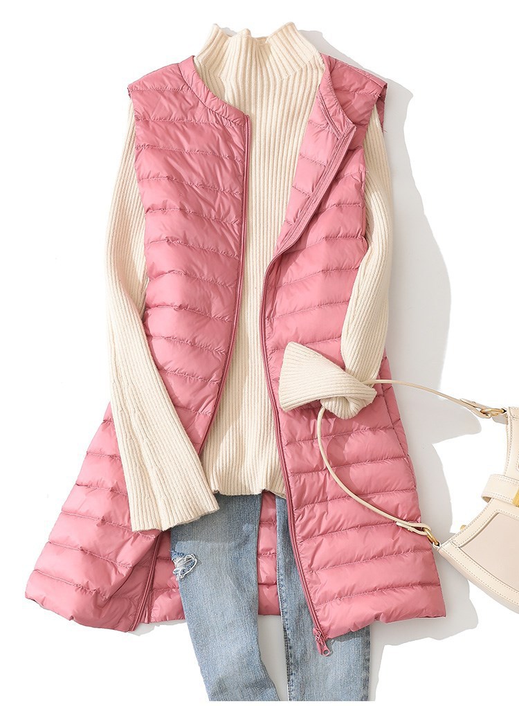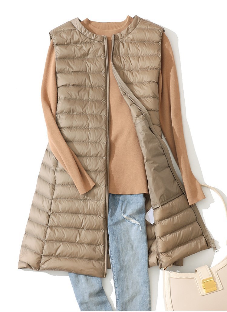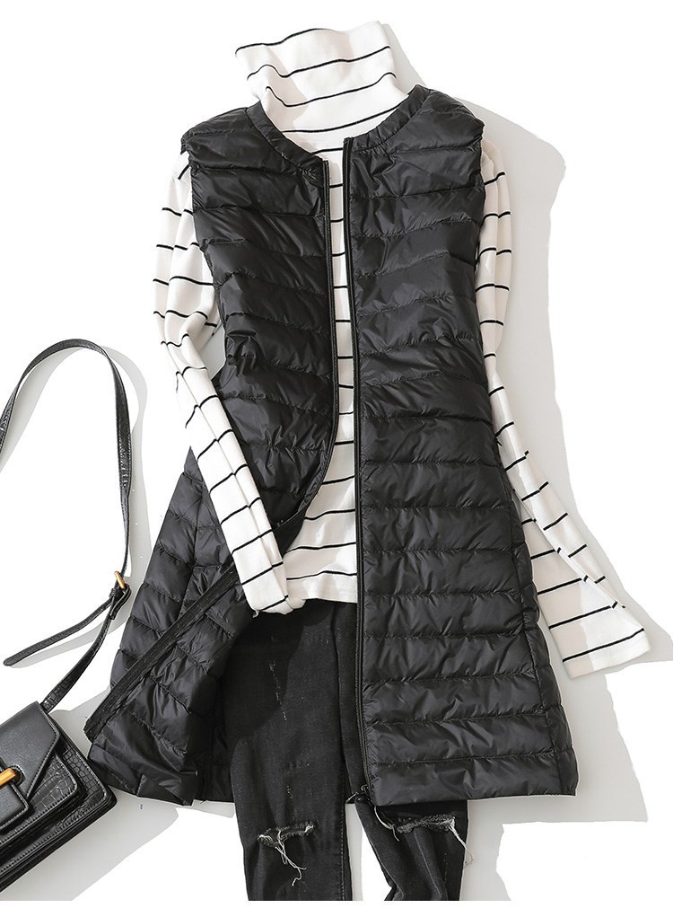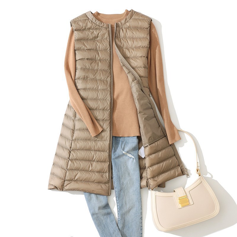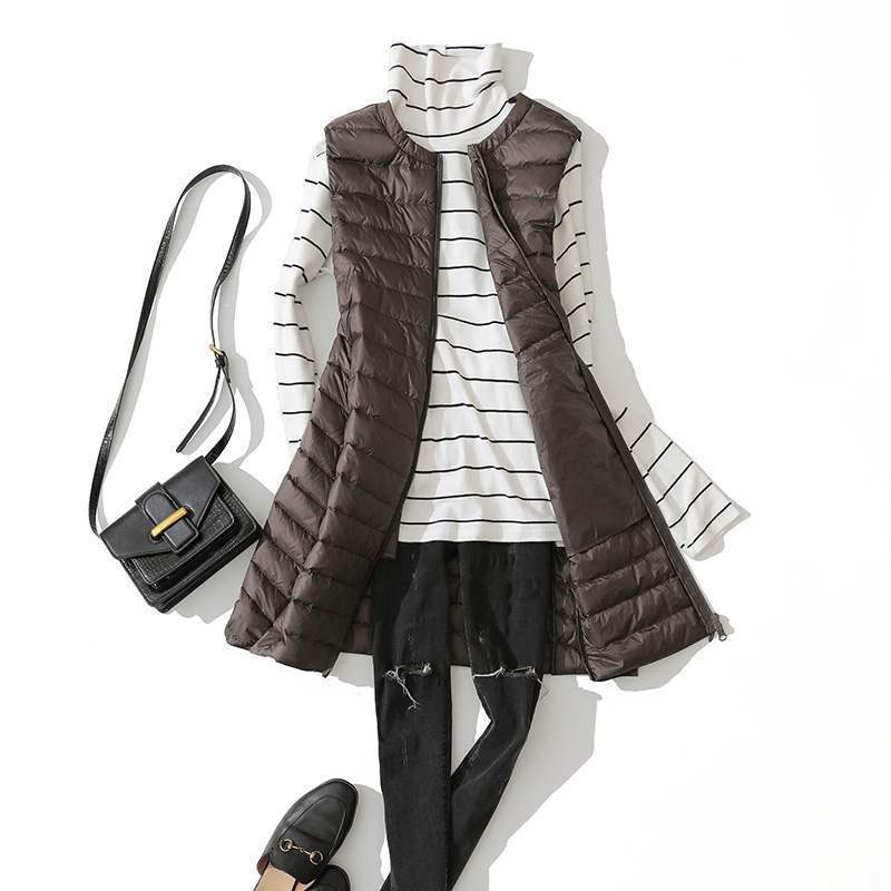 라이트 다운 조끼 여자 중간 길이의 라운드 넥 가을 및 겨울 와셔 다운 재킷 라이너 화이트 덕 다운 플러스 사이즈 조끼