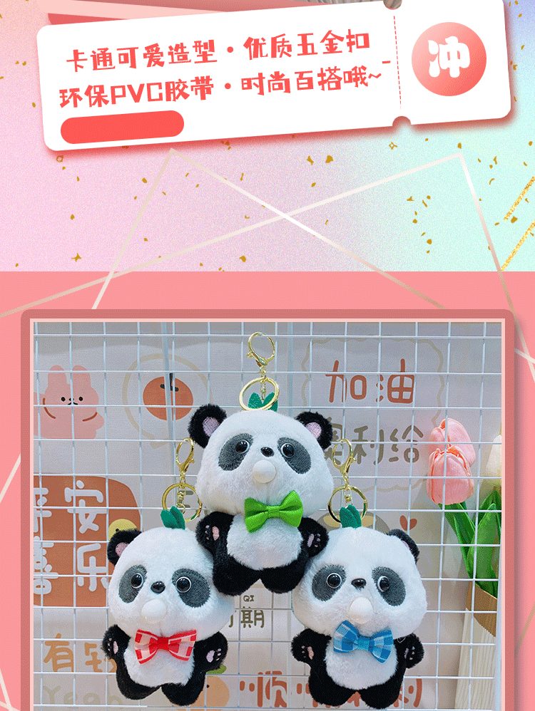 스핏 버블 나비 넥타이 팬더 커플 가방 펜던트 인형 키 체인 가방 작은 인형 키 체인 도매스토어 가기
