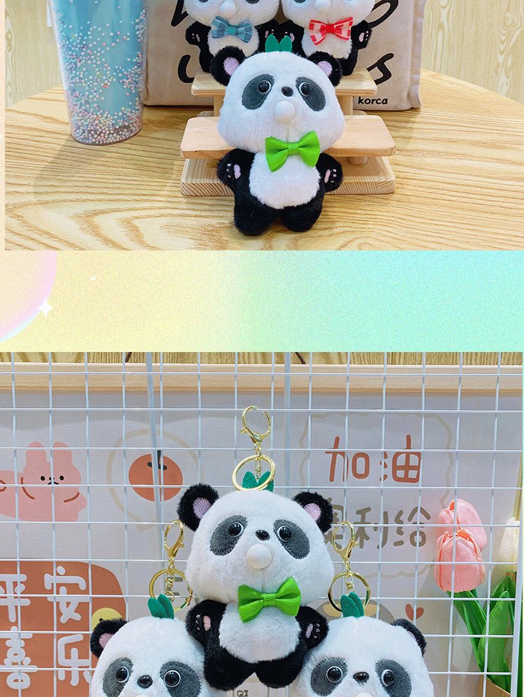 스핏 버블 나비 넥타이 팬더 커플 가방 펜던트 인형 키 체인 가방 작은 인형 키 체인 도매