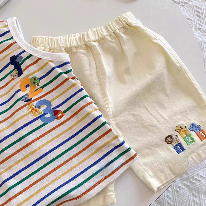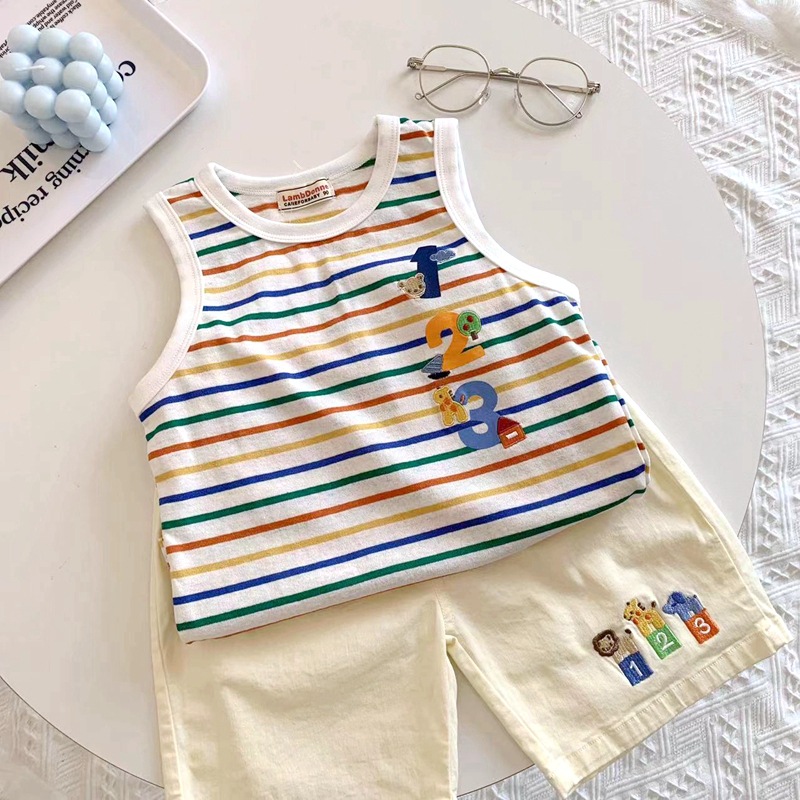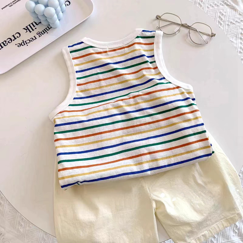 중소형 어린이 조끼 세트 여름 일본 어린이 줄무늬 소년 조끼 반바지 투피스 대외 무역 아동복스토어 가기