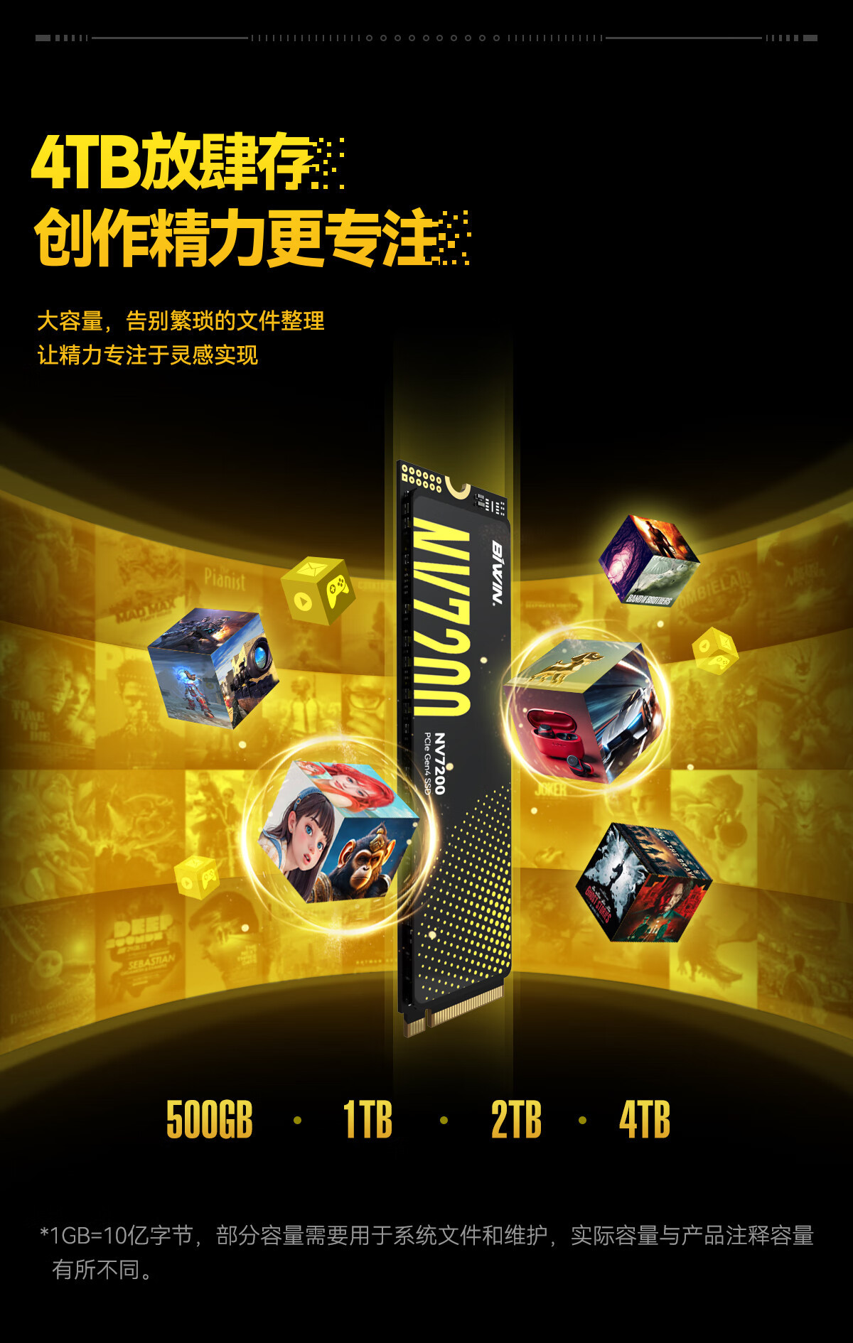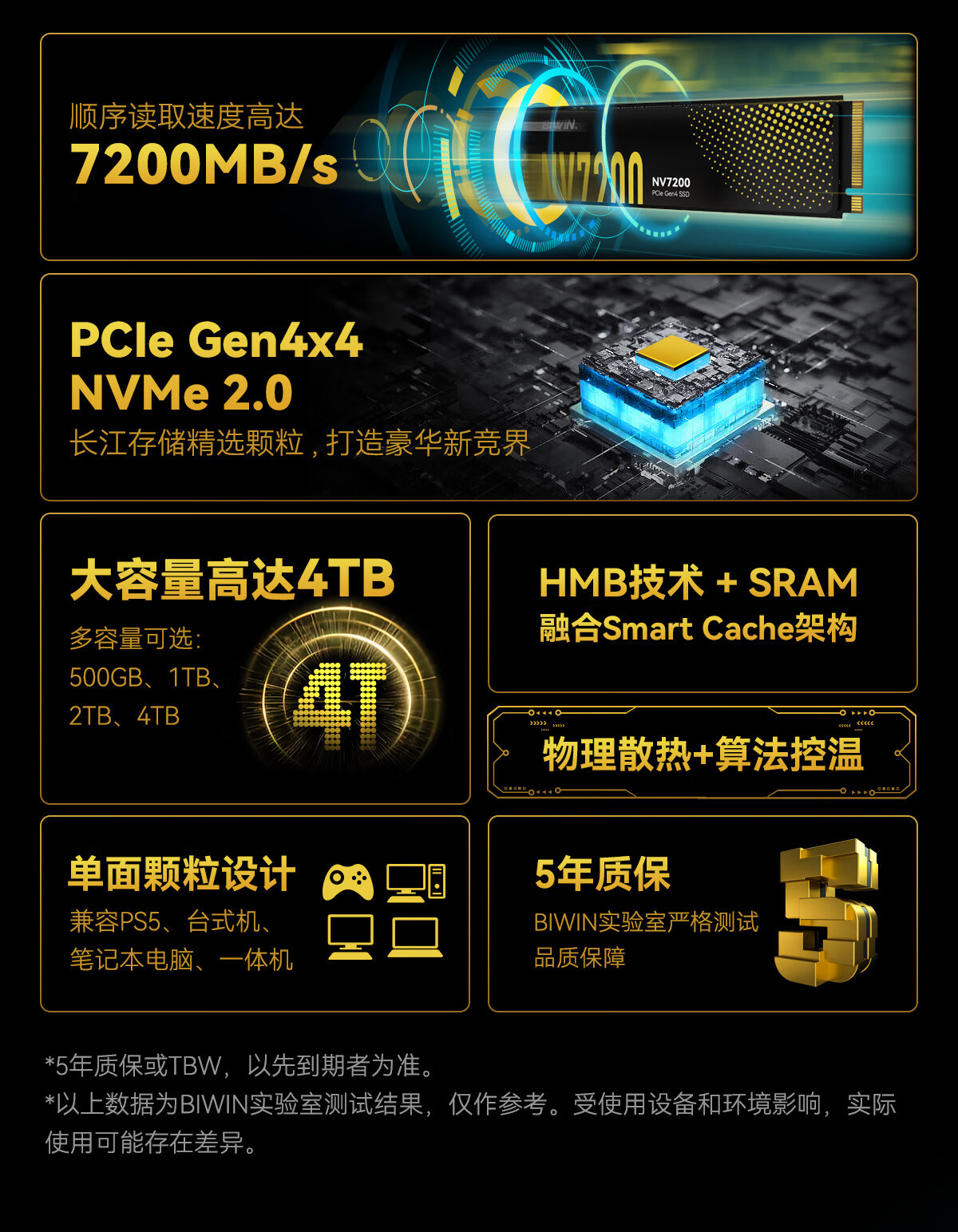 Biwei 2TSSD 솔리드 스테이트 드라이브 M.2 NVMe 프로토콜 NV7200 양쯔강 저장 입자 PCIe4.0 1T스토어 가기