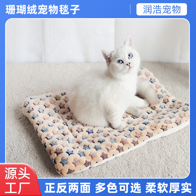 소스 제조 업체 도매 재고 애완 동물 담요 매트 개 사육장 고양이 둥지 사계절 보편적 인 산호 양털 대형, 중형 및 소형 따뜻한