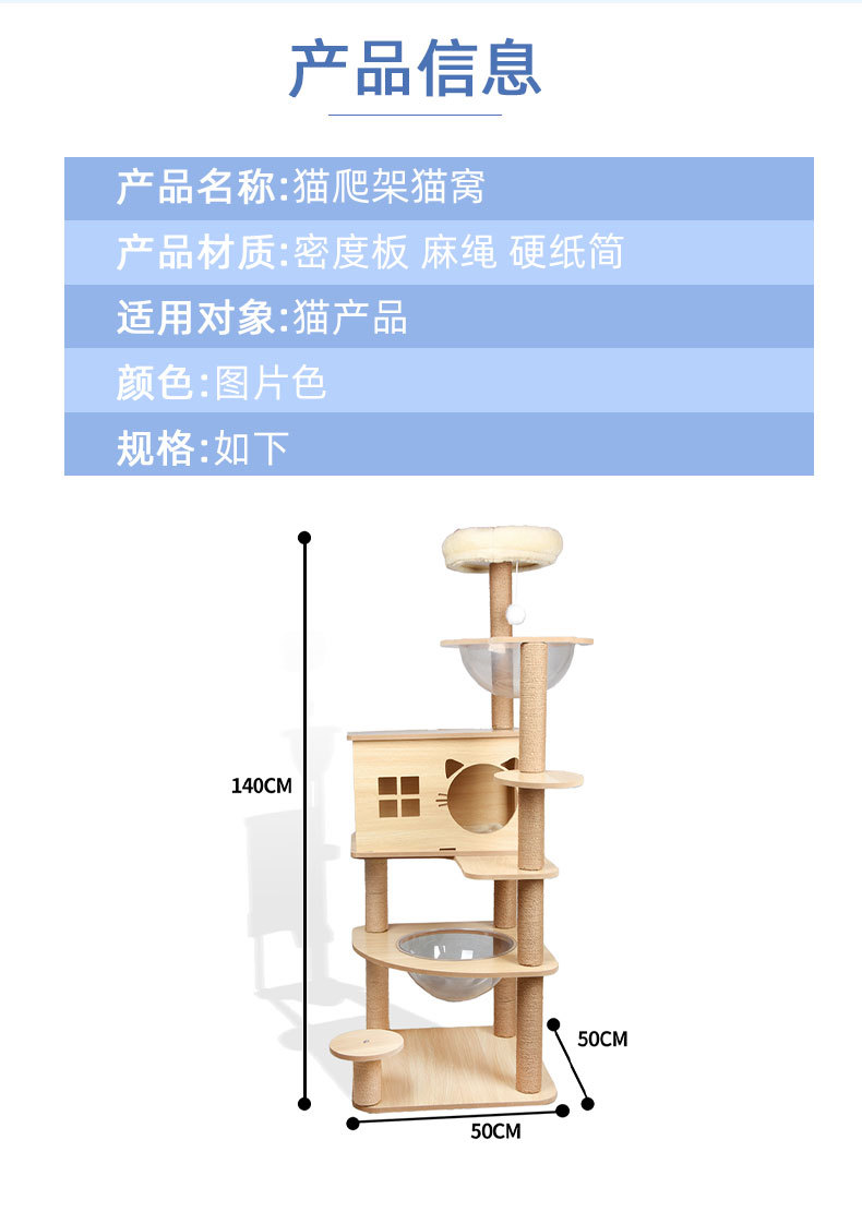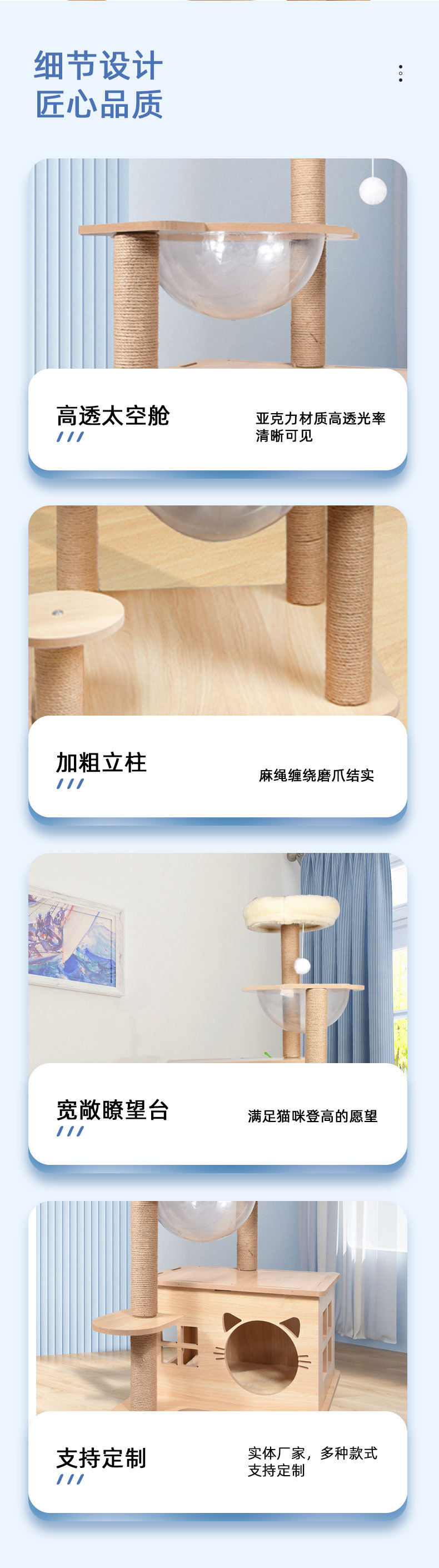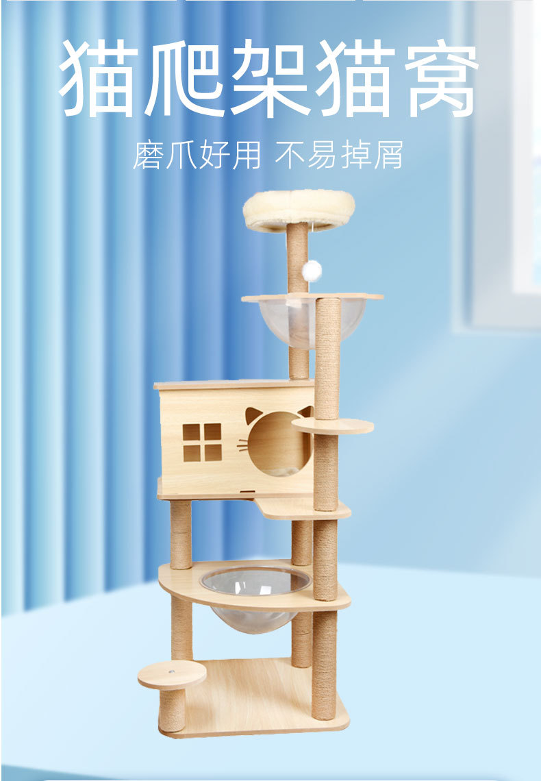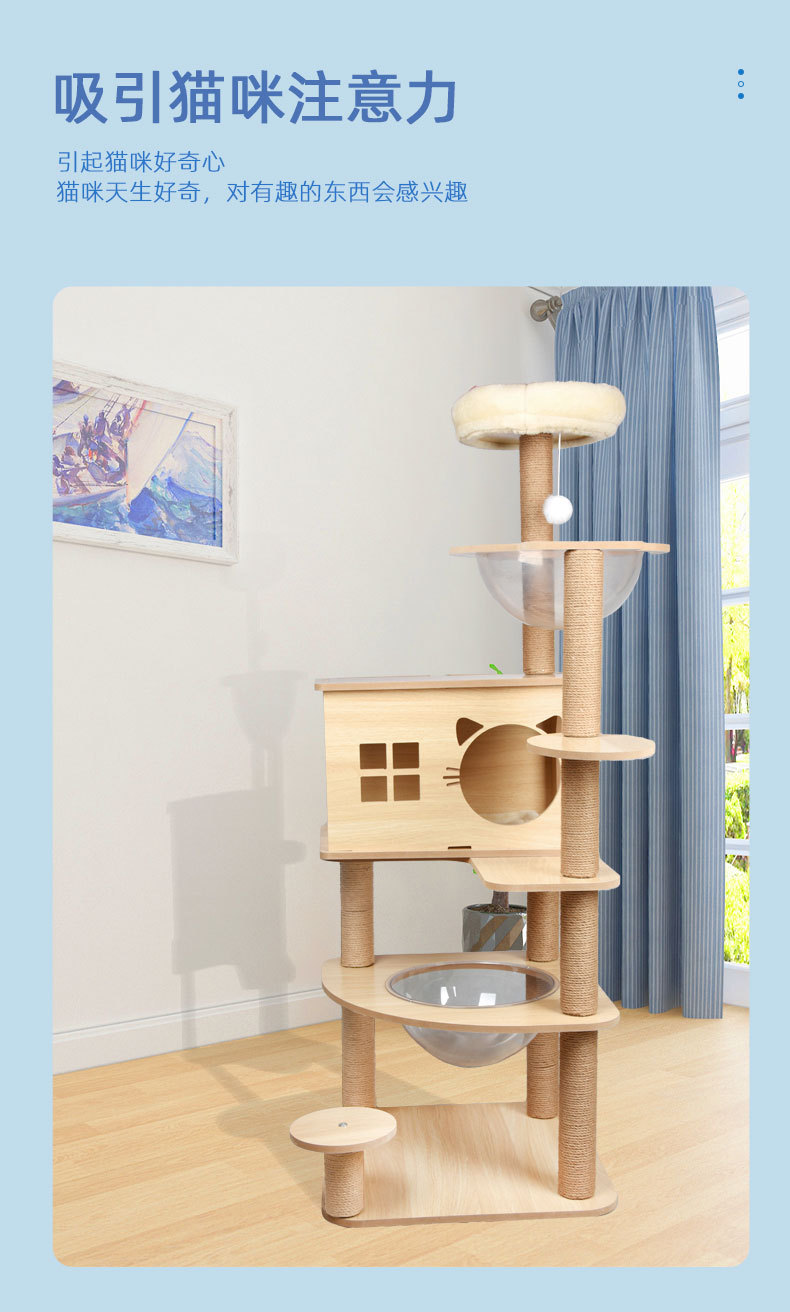 대형 고양이 등반 프레임 공간 캡슐 고양이 둥지 고양이 나무 통합 대형 나무 고양이 프레임 하우스 고양이 긁는 포스트 작은 빌라 목조 주택스토어 가기