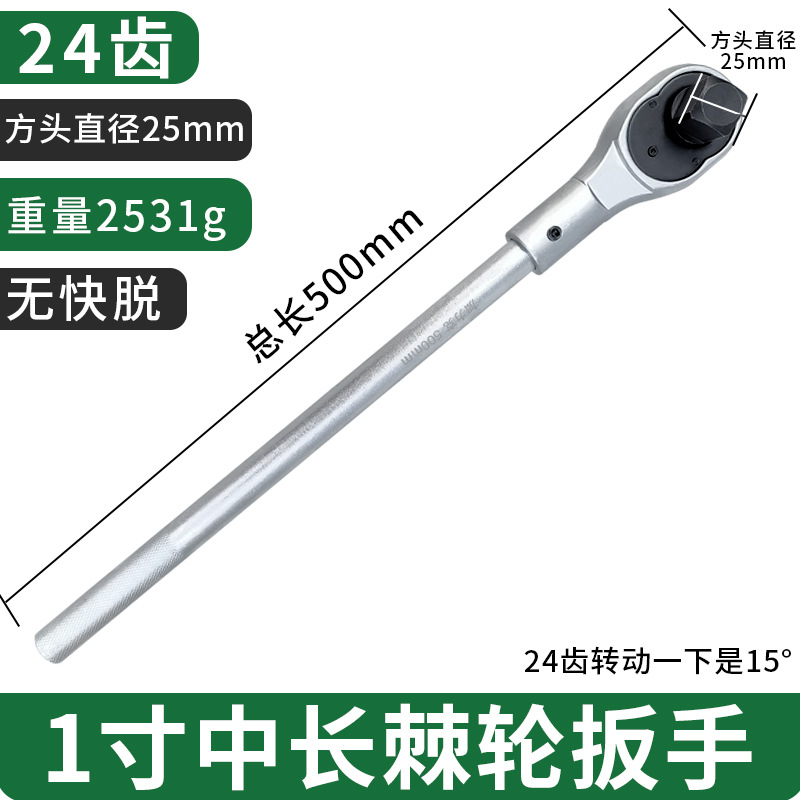 • 빠른 출시없이 500mm 길이의 실버 1 인치 래칫 렌치
