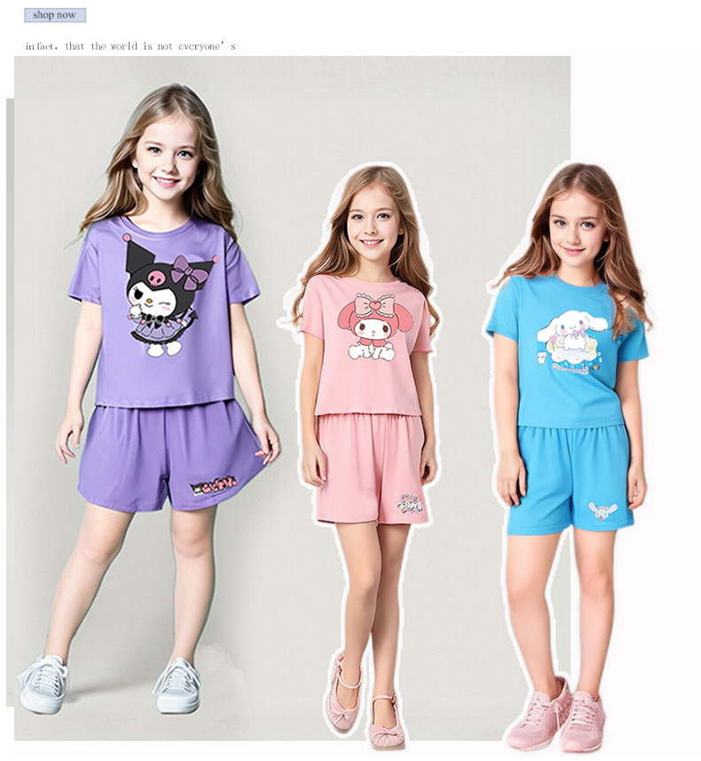 새로운 도착 중소 소녀 아기 도파민 만화 패션 간단한 티셔츠 반바지 투피스 세트 2025 여름스토어 가기