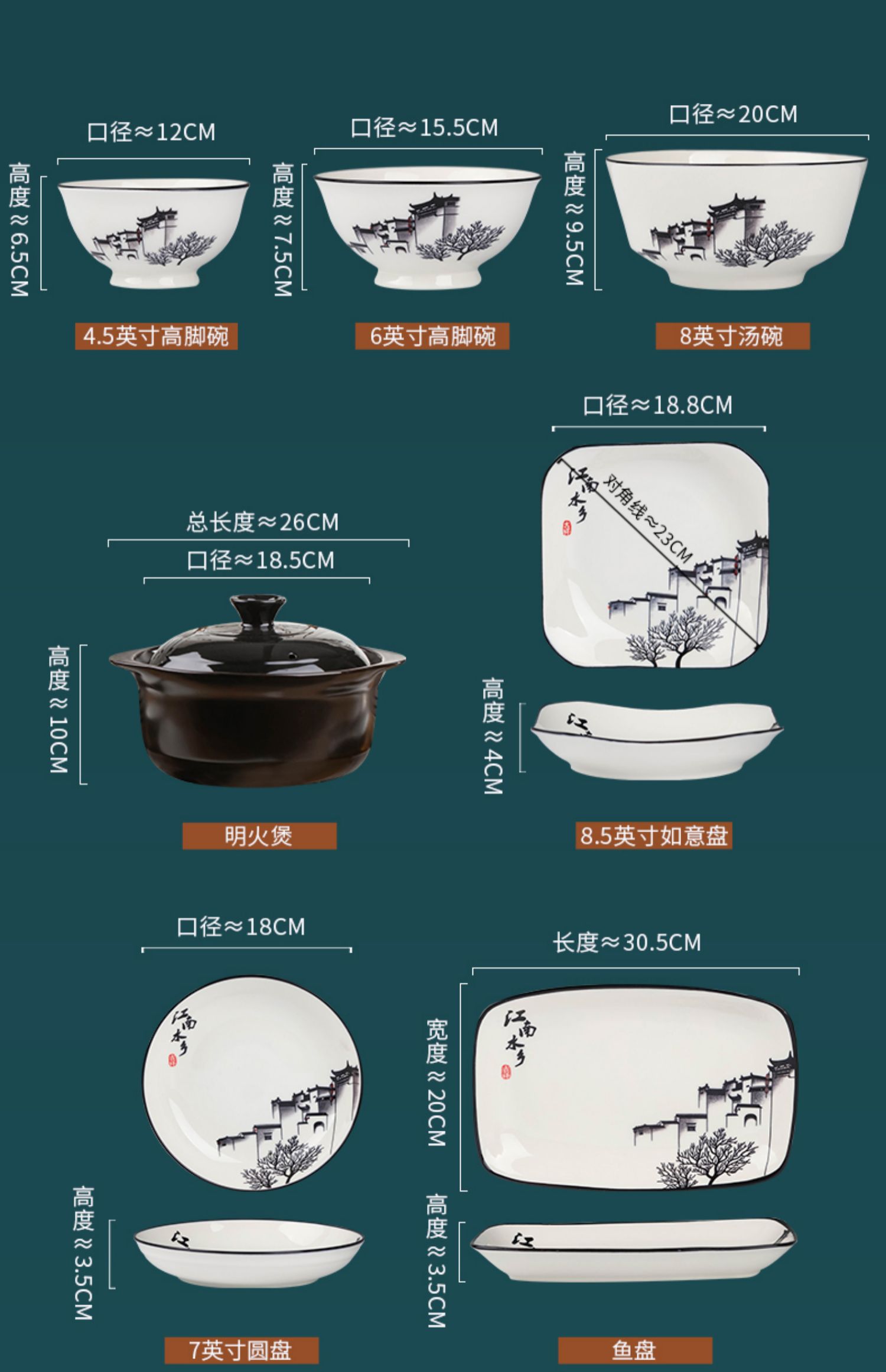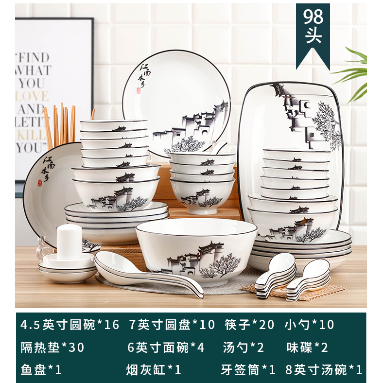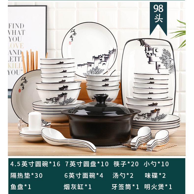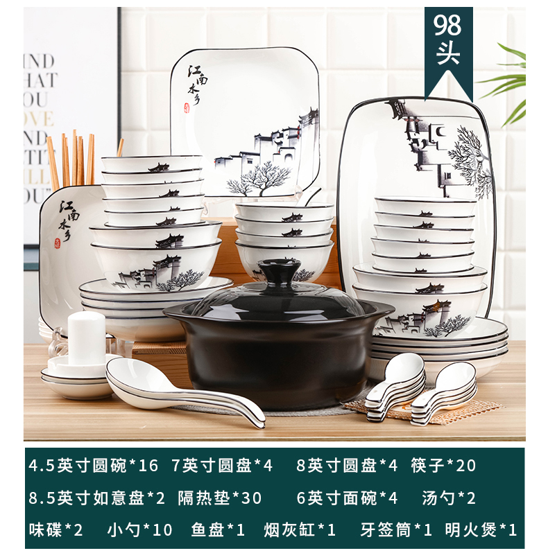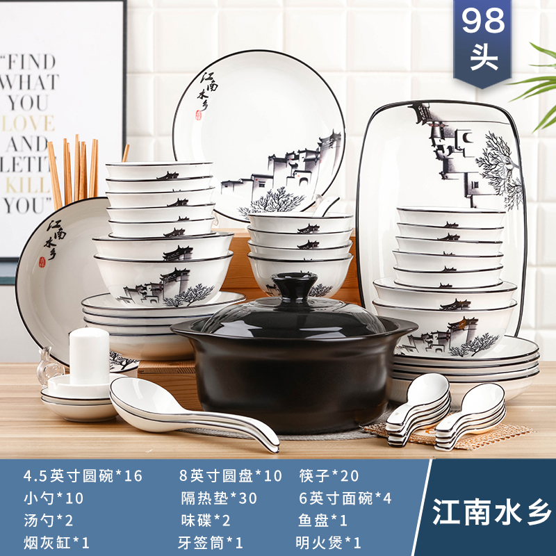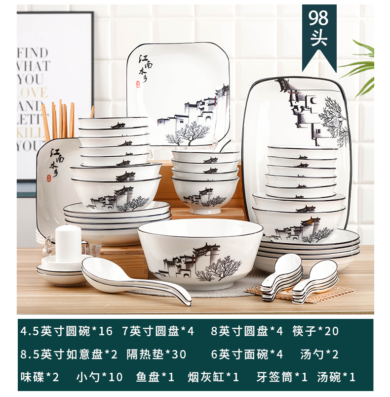 • Jiangnan Watertown New-수프 그릇이있는 98 조각