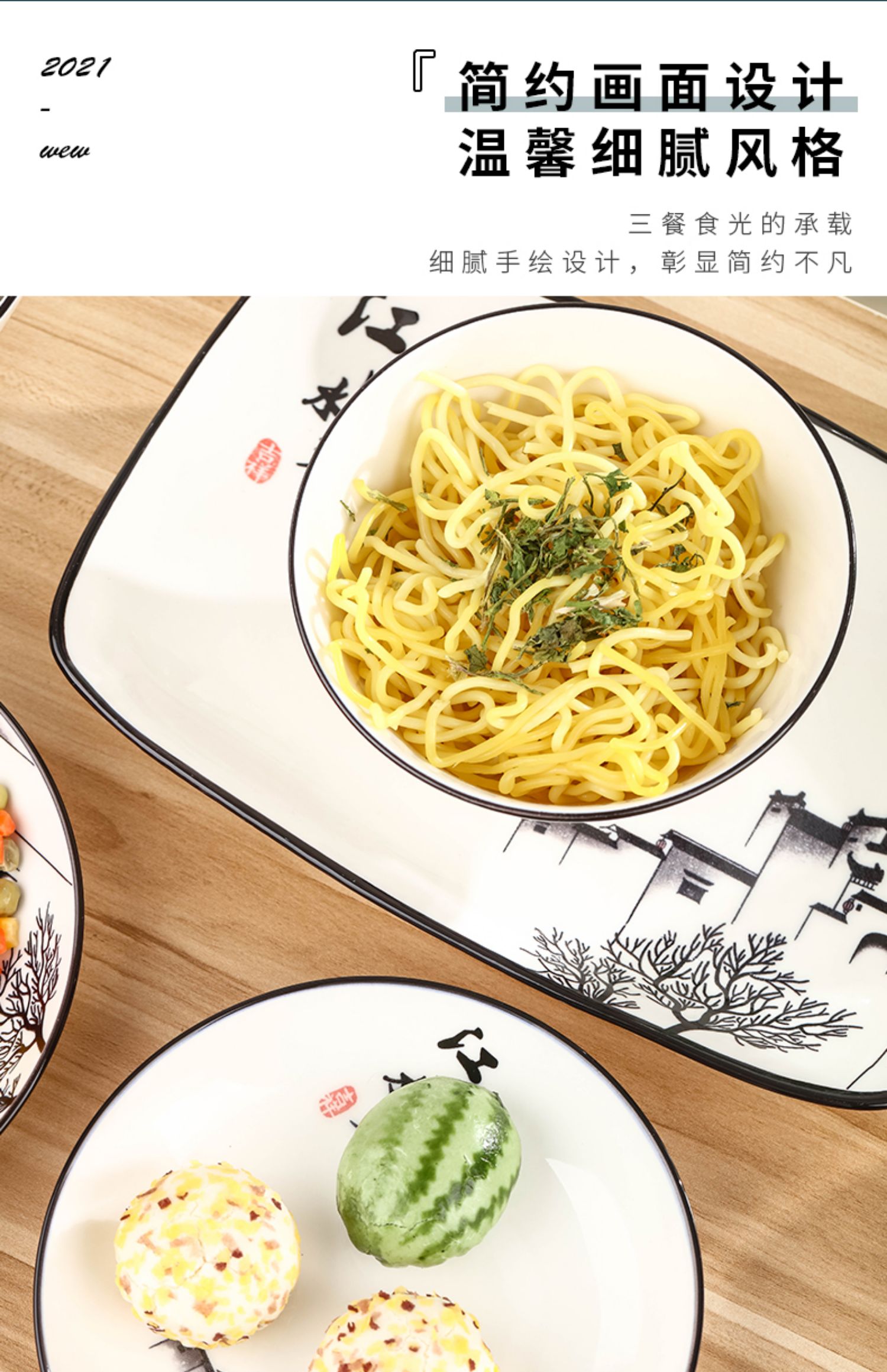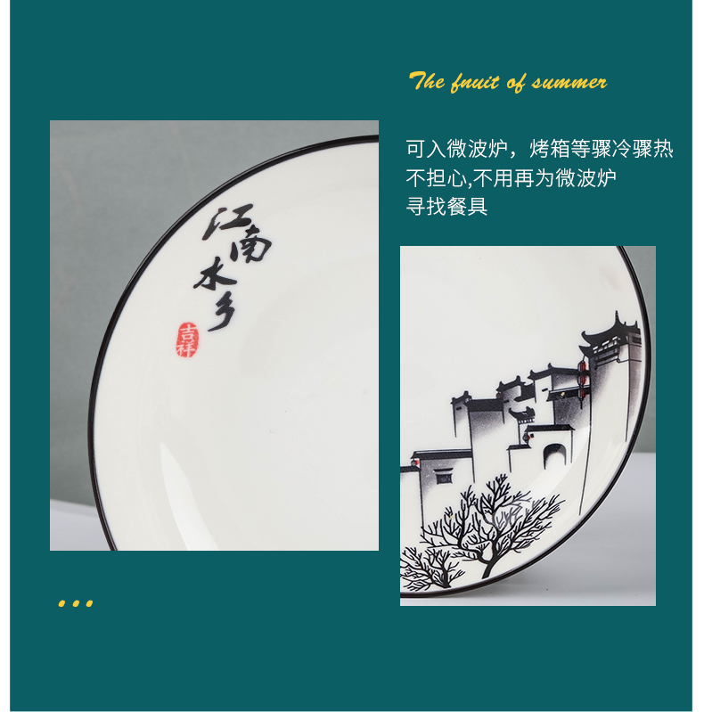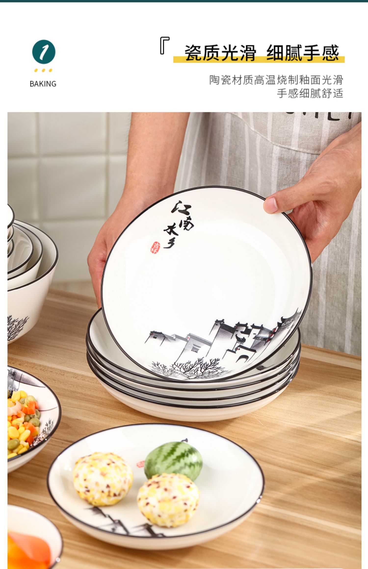 접시와 세트 가구 10 인 조합 새로운 중국 스타일 간단한 세라믹 식기 안티 스케일링 및 단열 중국 스타일 플레이트 네트 그릇스토어 가기
