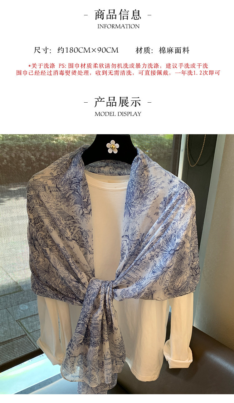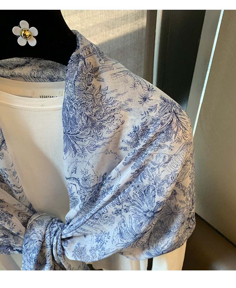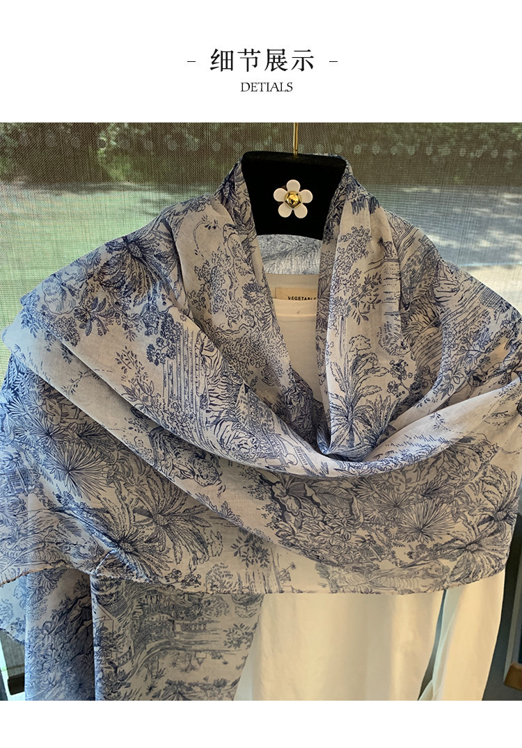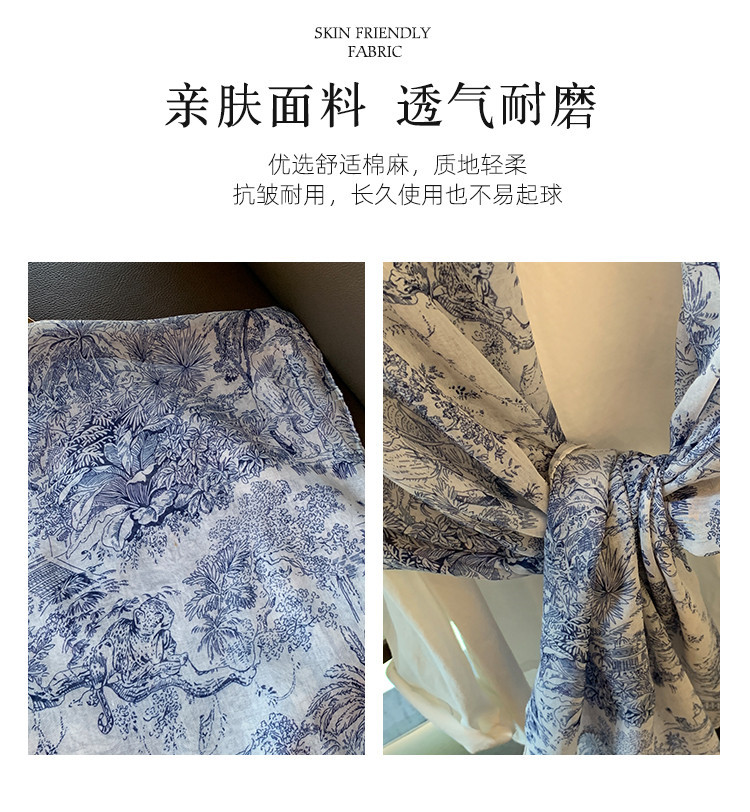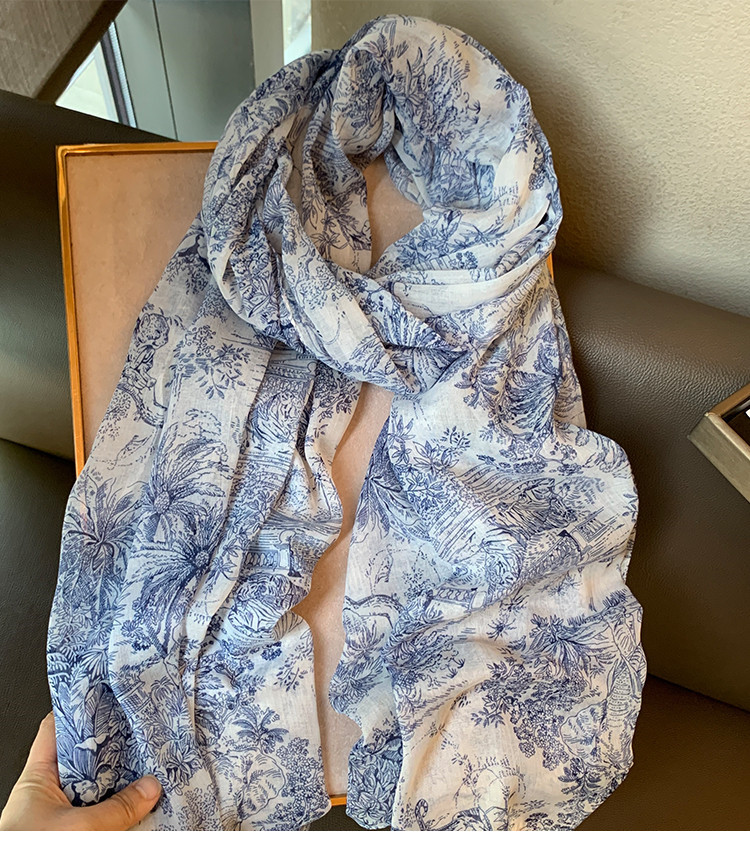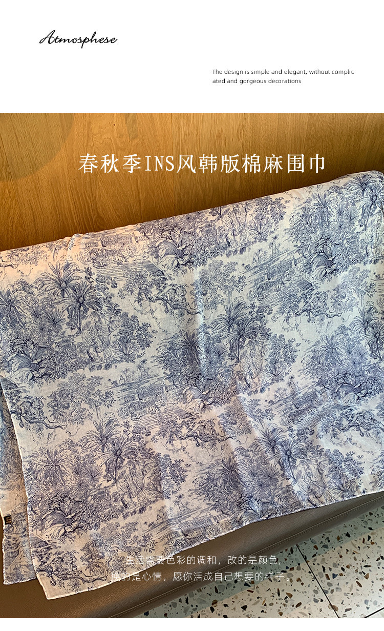 파란색과 꽃 숲 스카프 여성의 봄과 여름 해변 선 스크린 대형 목도리 가을 얇은 면과 리넨 스카프스토어 가기