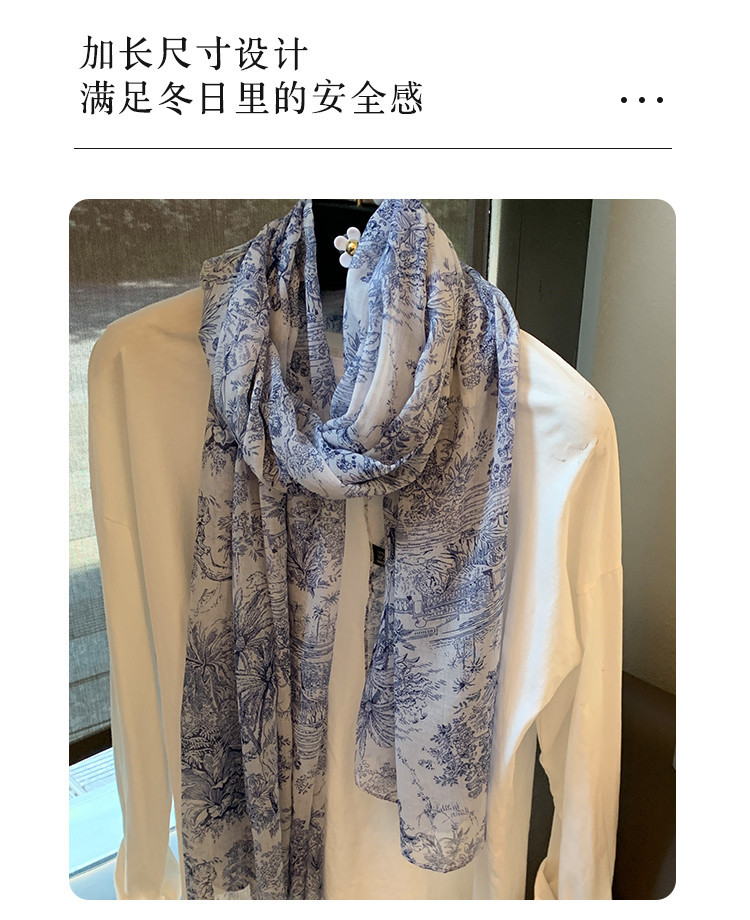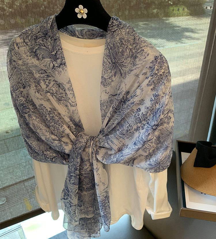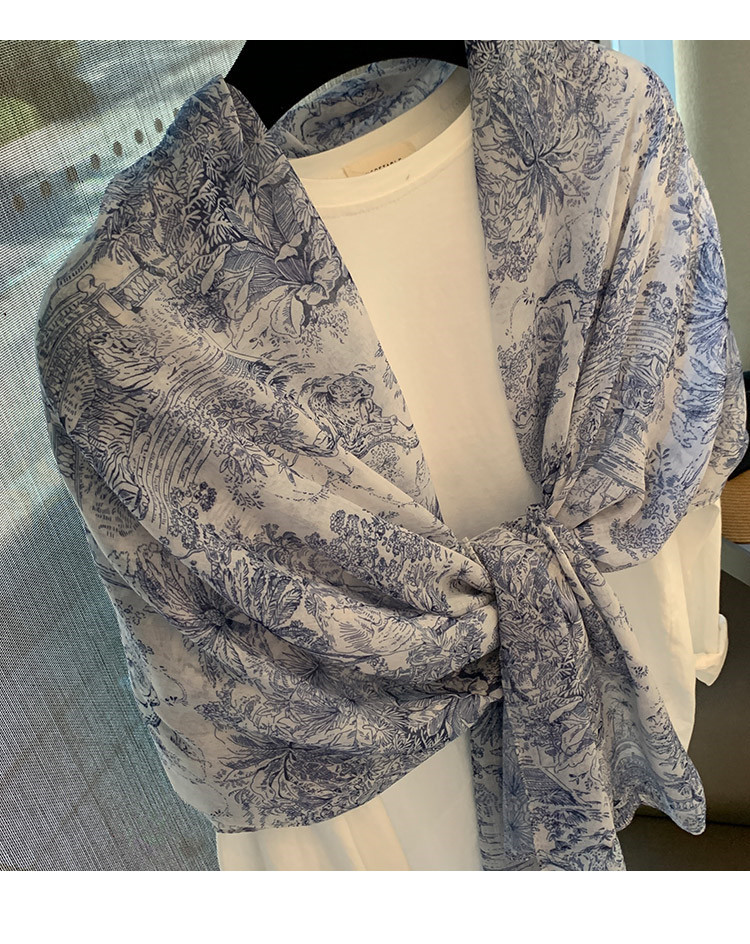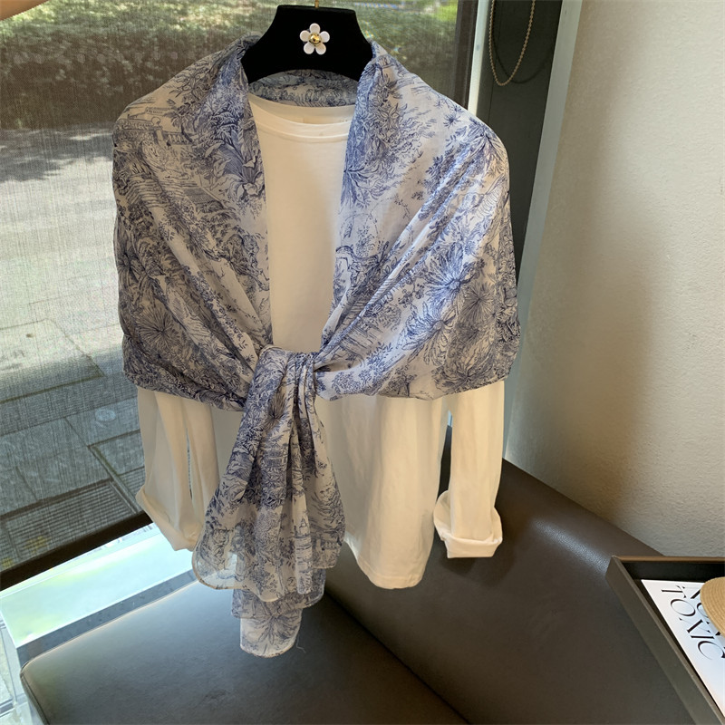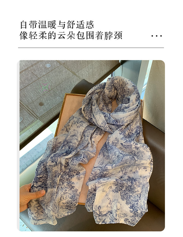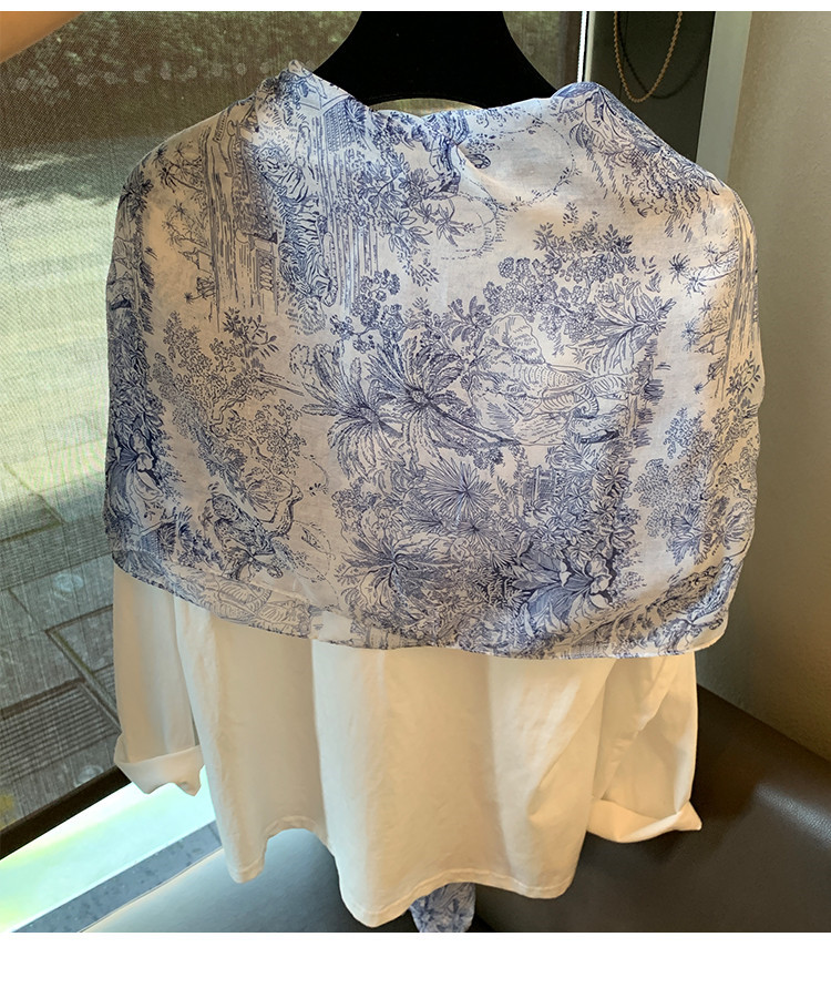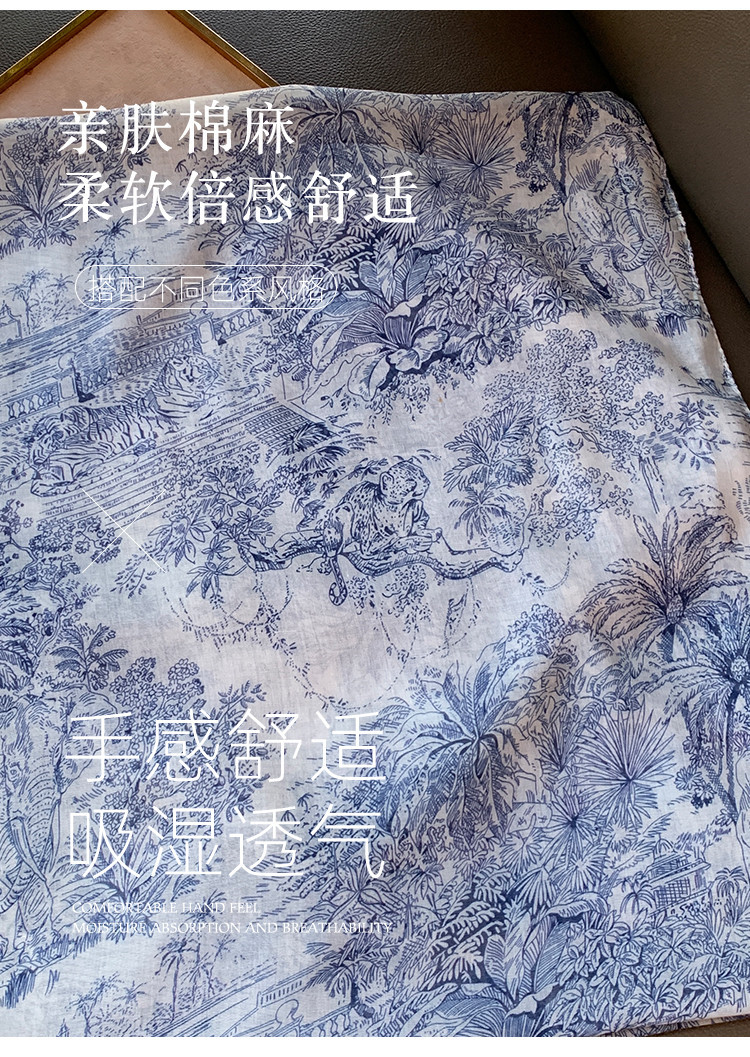 파란색과 꽃 숲 스카프 여성의 봄과 여름 해변 선 스크린 대형 목도리 가을 얇은 면과 리넨 스카프스토어 가기