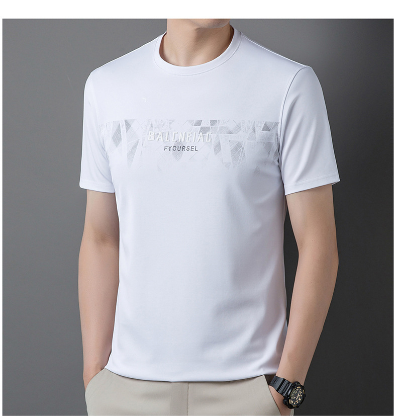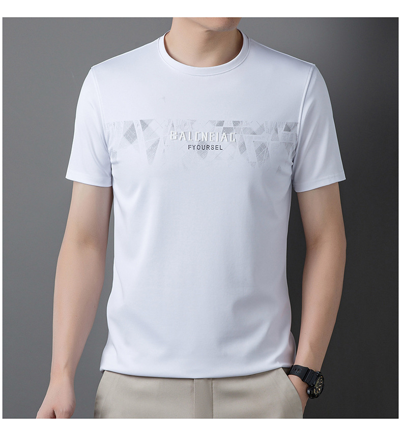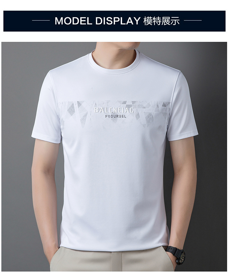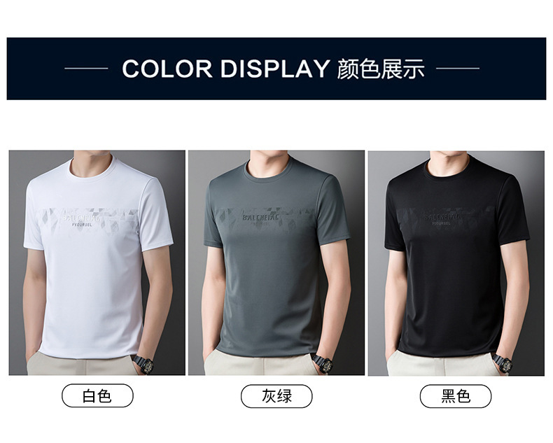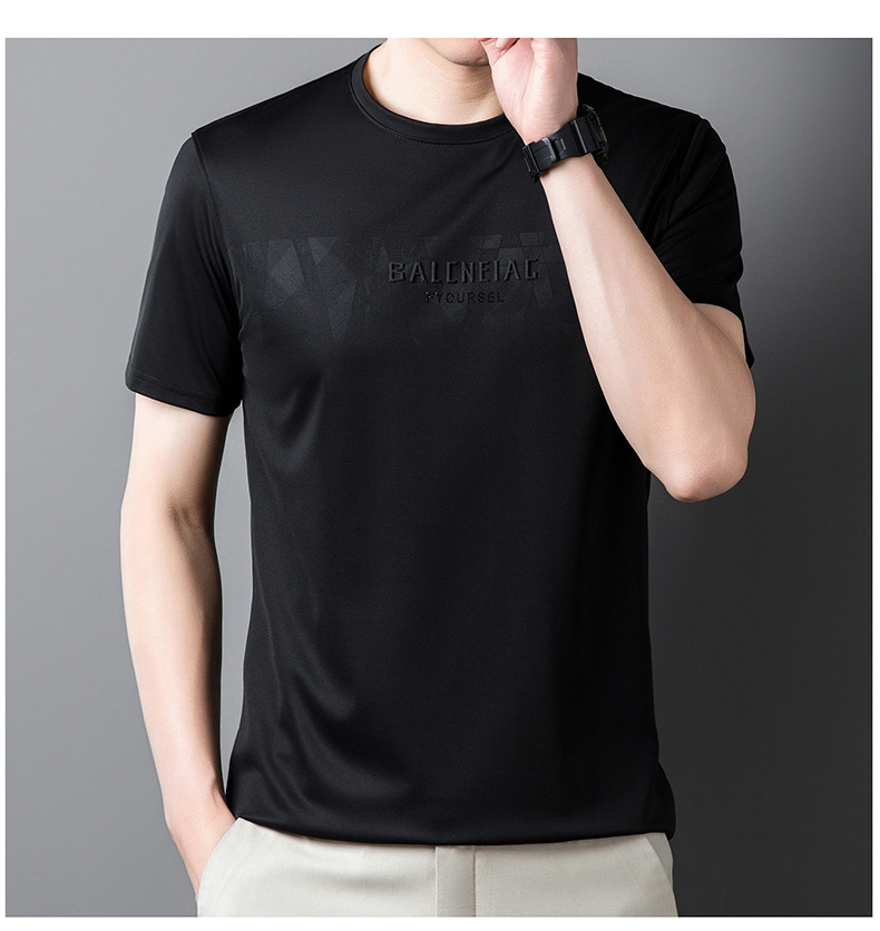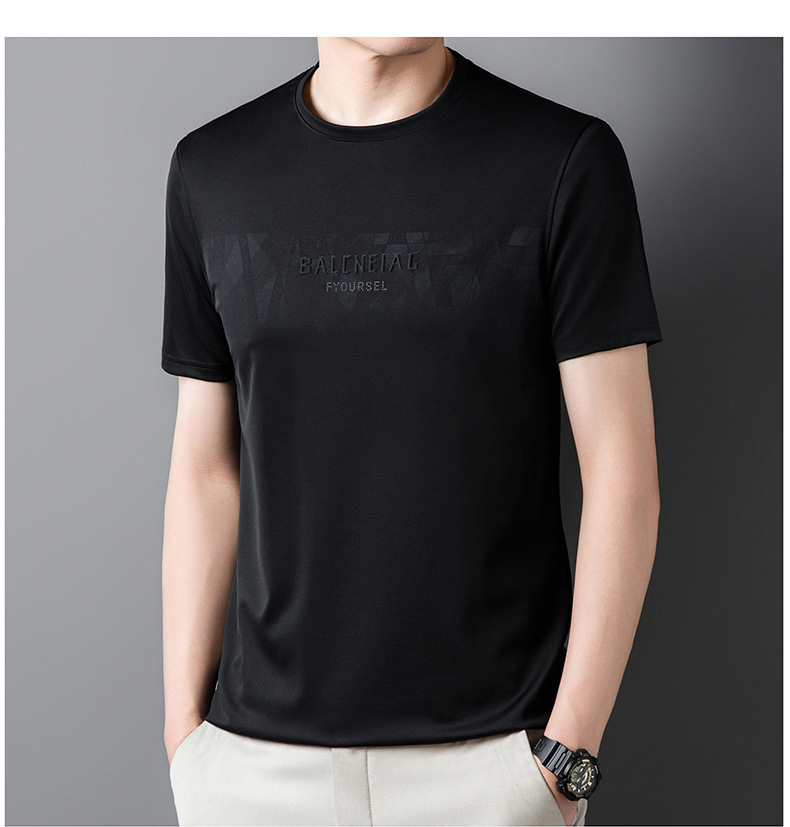 2024 Linghao 의류 중년 남성 라이트 성숙한 캐주얼 라운드 넥 반팔 스트레이트 티셔츠 여름