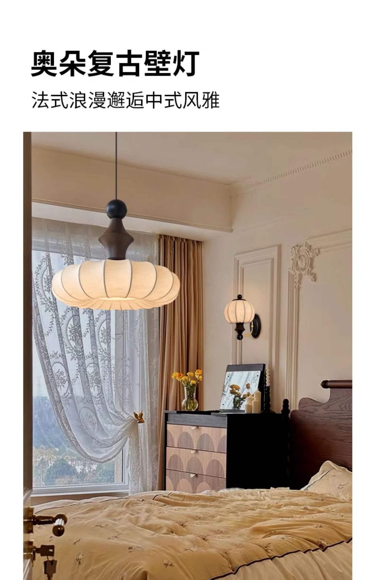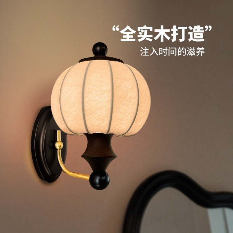 레트로 스타일 실크 벽 램프 단단한 나무 새로운 중국 스타일 높은 수준의 침실 침실 램프 프랑스 스타일의 새로운 중국 스타일 벽 램프