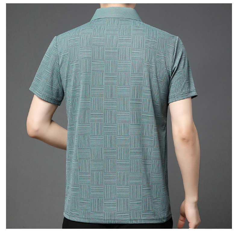 여름 새로운 얇은 아이스 실크 티셔츠 남성 비즈니스 캐주얼 중년 아빠 옷깃 폴로 셔츠 남성 도매