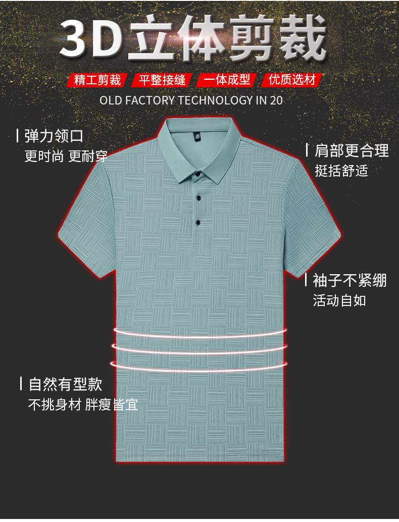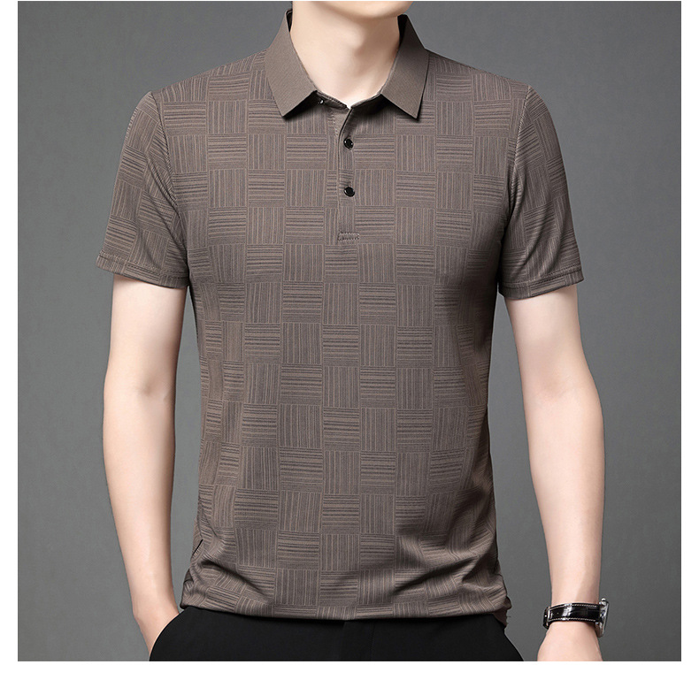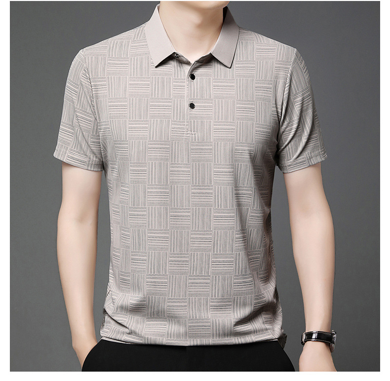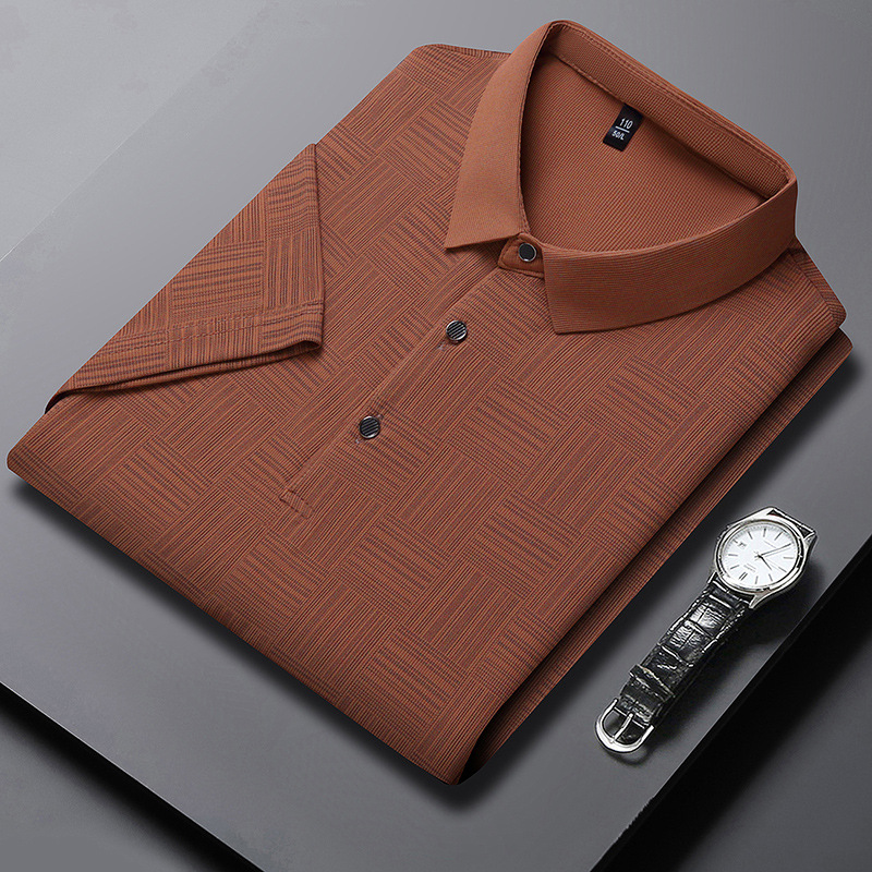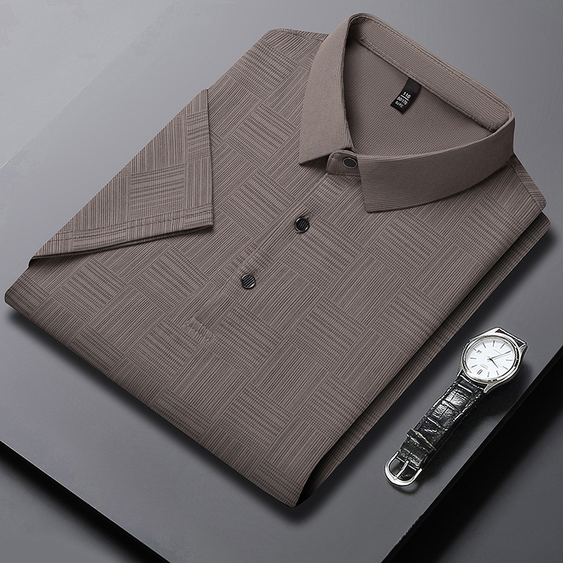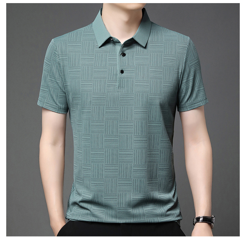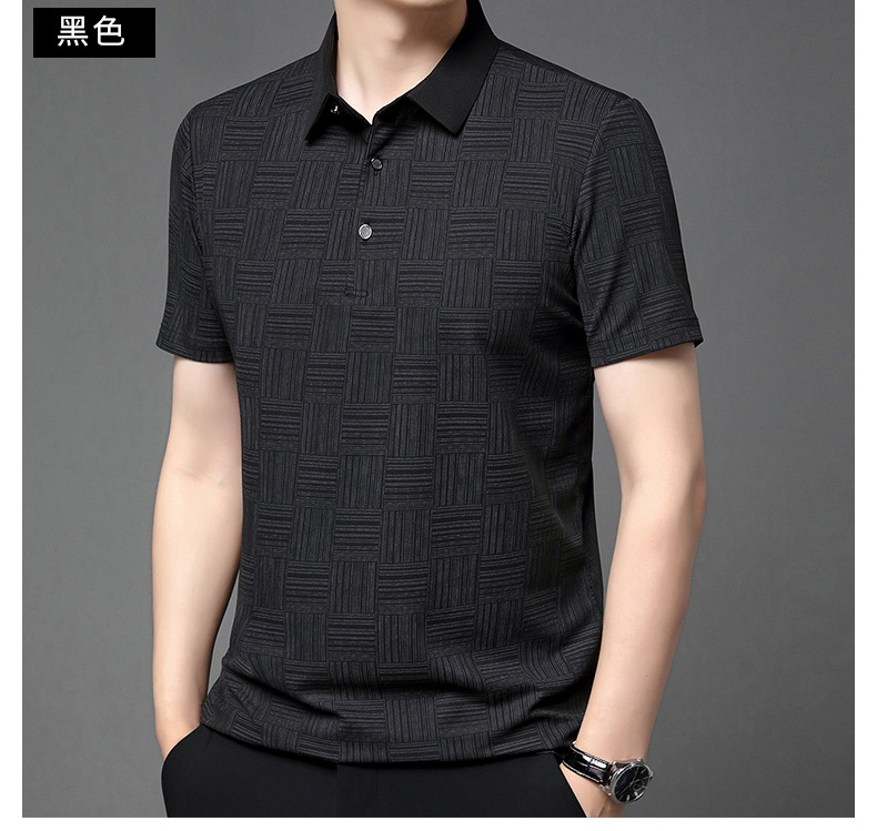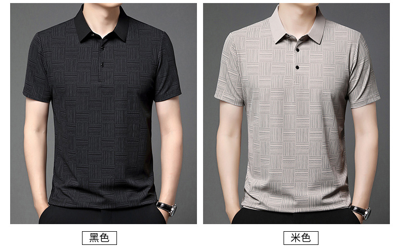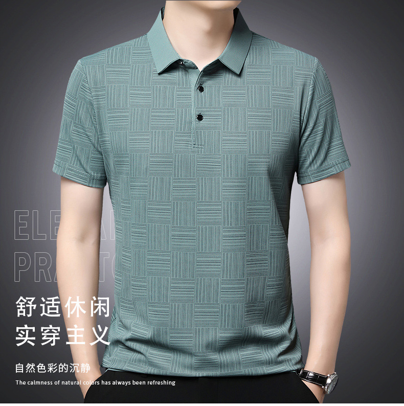 여름 새로운 얇은 아이스 실크 티셔츠 남성 비즈니스 캐주얼 중년 아빠 옷깃 폴로 셔츠 남성 도매스토어 가기