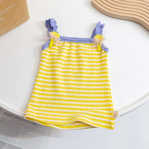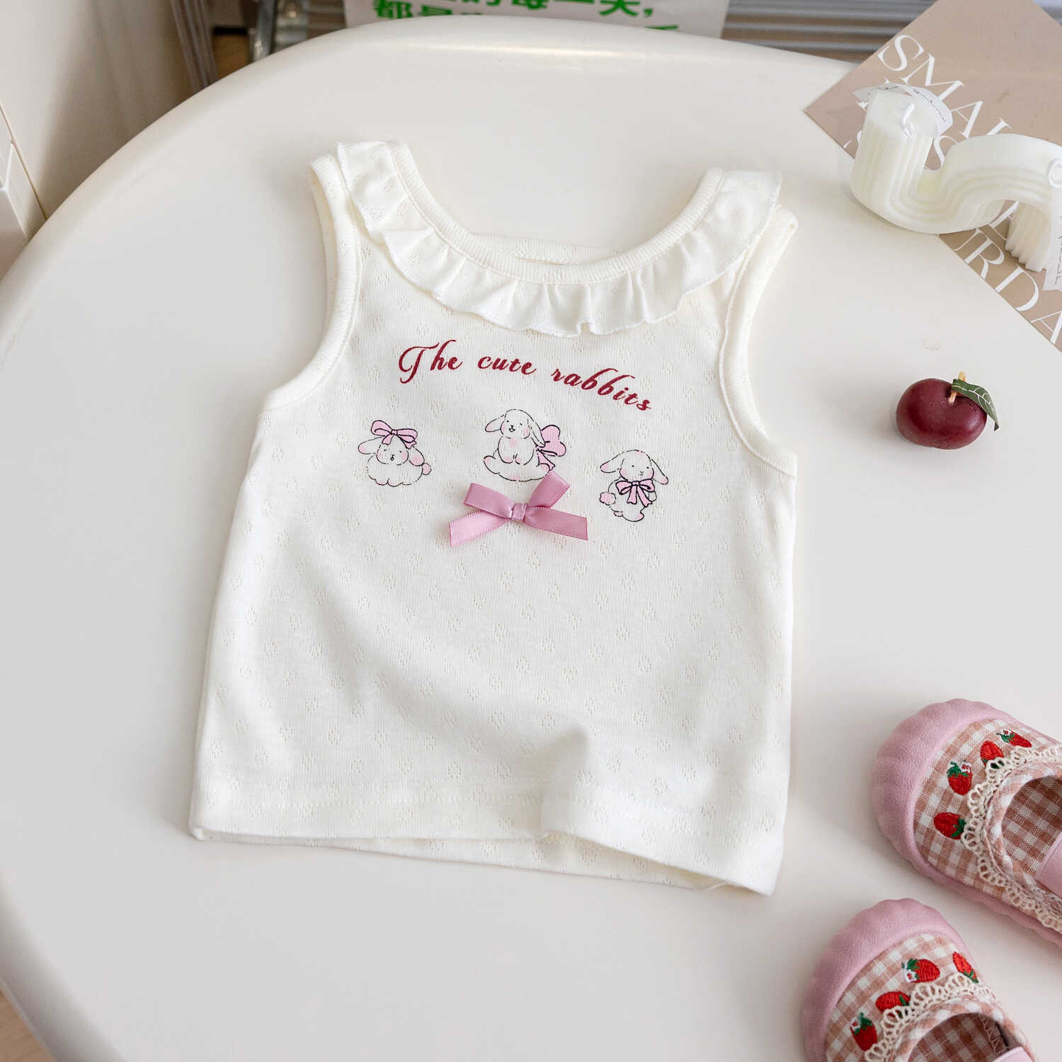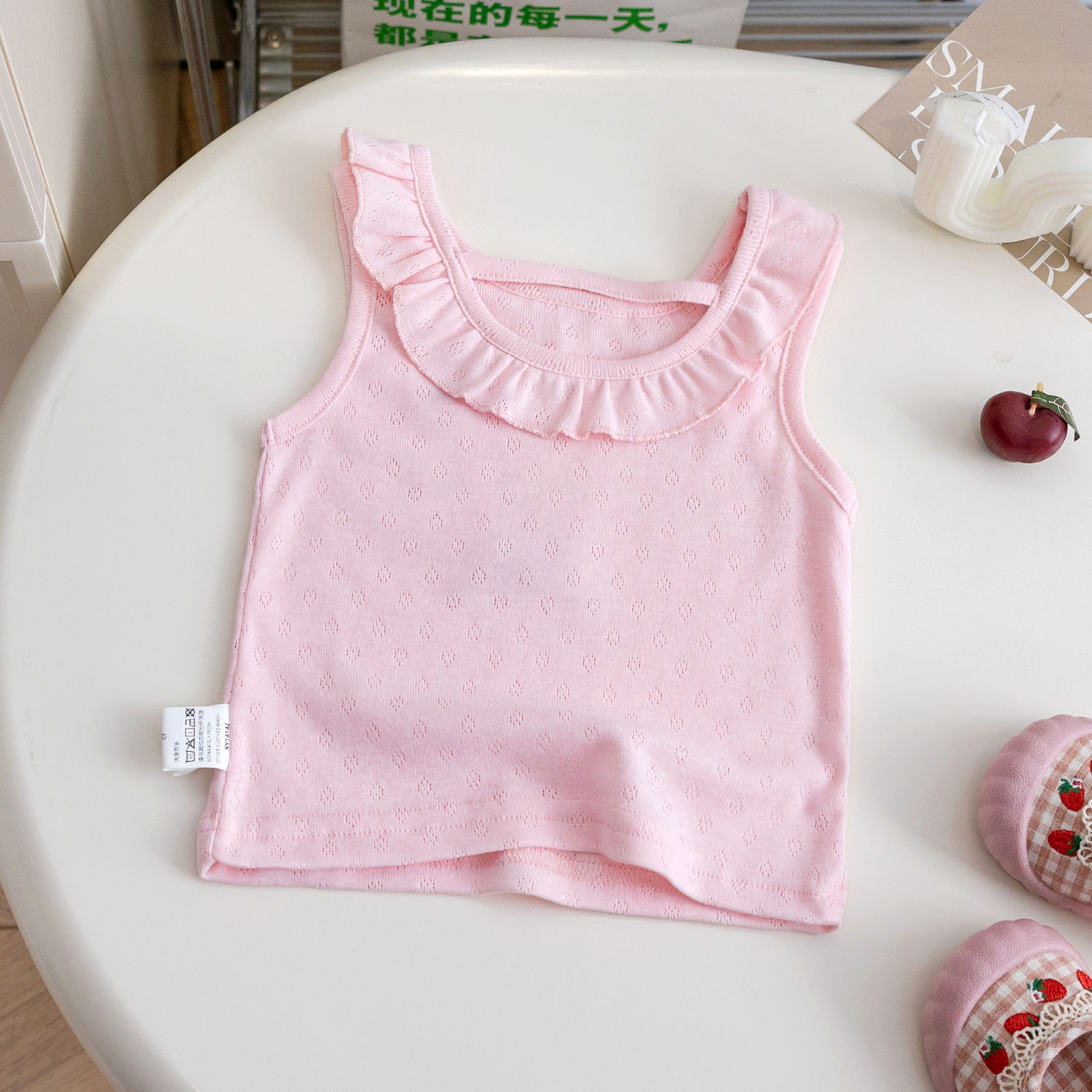 여자 여름 경량 탑 아기의 귀여운 레이스 조끼 여성의 아기 외국인 스타일 여름 착용 얇은 여자 민소매 티셔츠