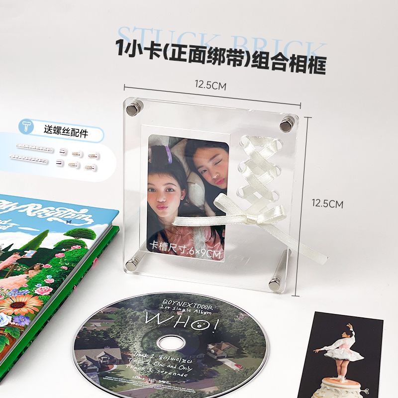 아크릴 작은 카드 벽돌 3 인치 사진 프레임 리본 브랜드 장식 더블 그루브 스타 디스플레이 스탠드스토어 가기