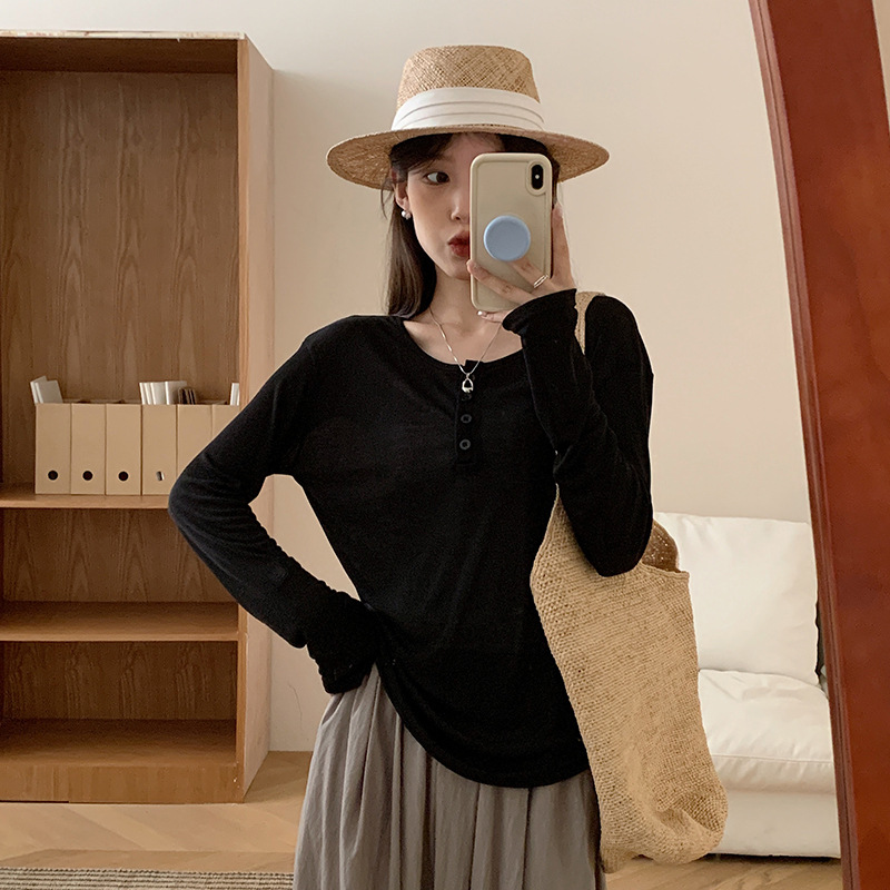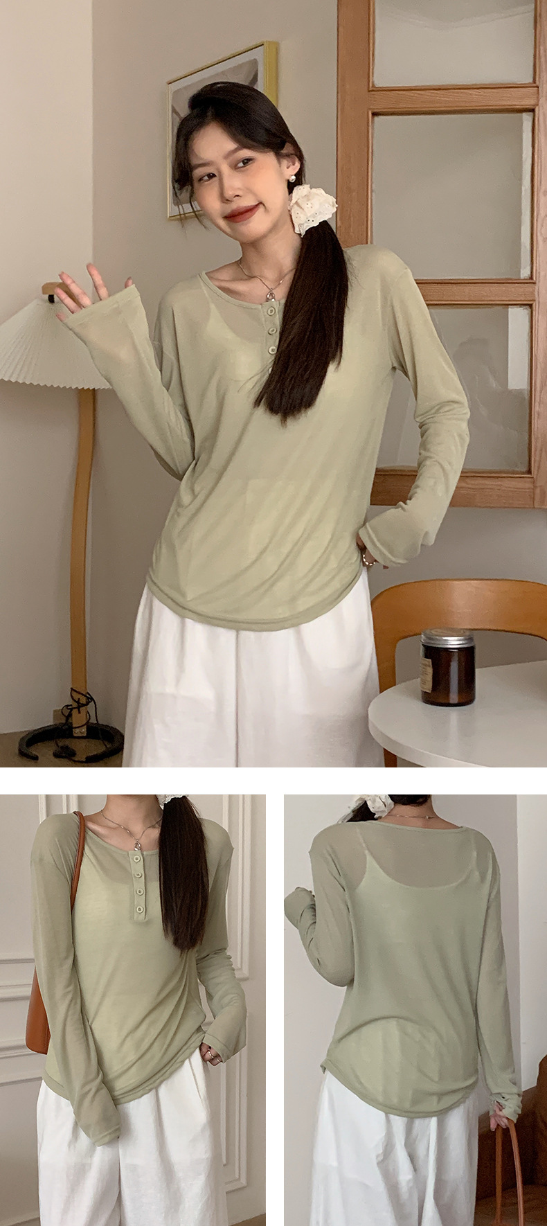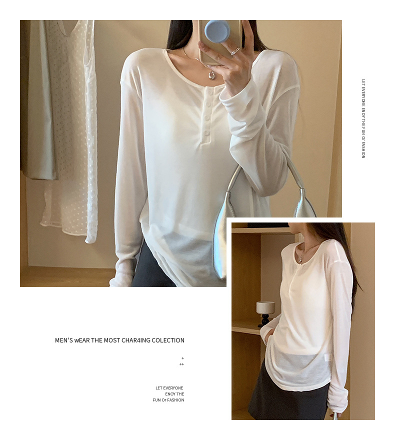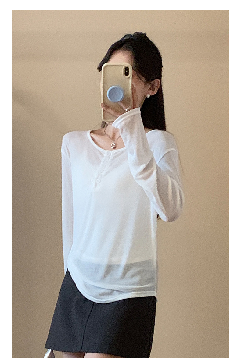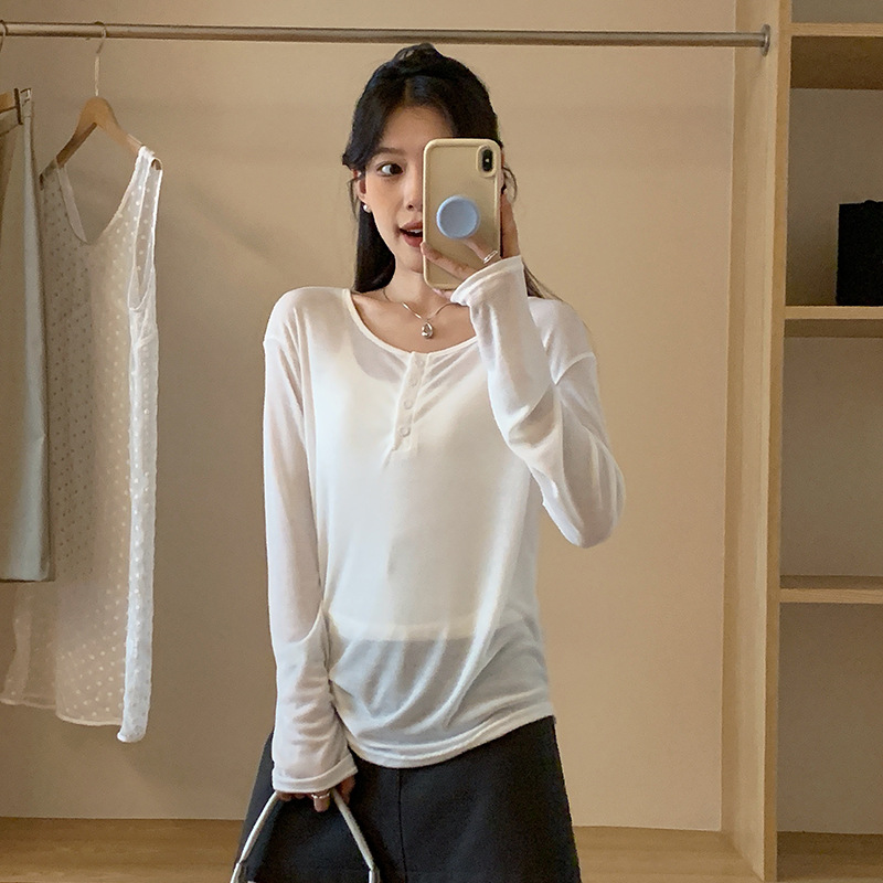 레이셀 텐셀 블라우스 긴팔 티셔츠 화이트 루즈핏 자외선 차단 이너웨어 여성 여름 얇은 레이스업 탑 라펠스토어 가기