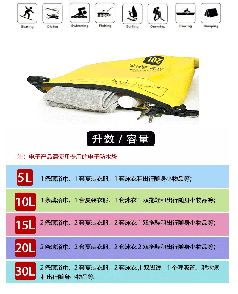 PVC 방수 가방 버킷 가방 방수 가방 해변 표류 수영 가방 야외 배낭 공장 직접 판매스토어 가기