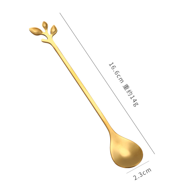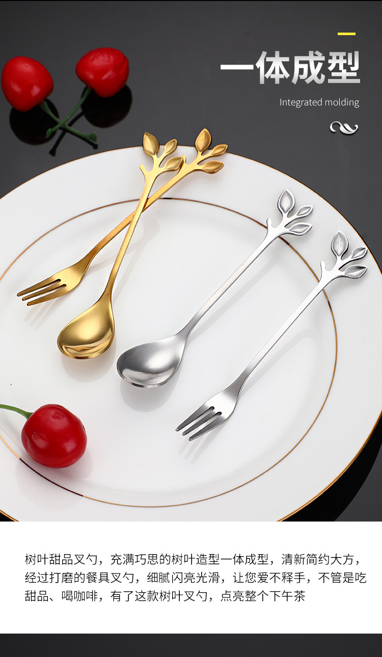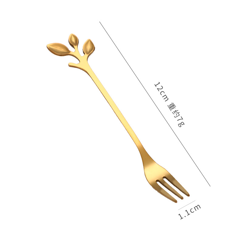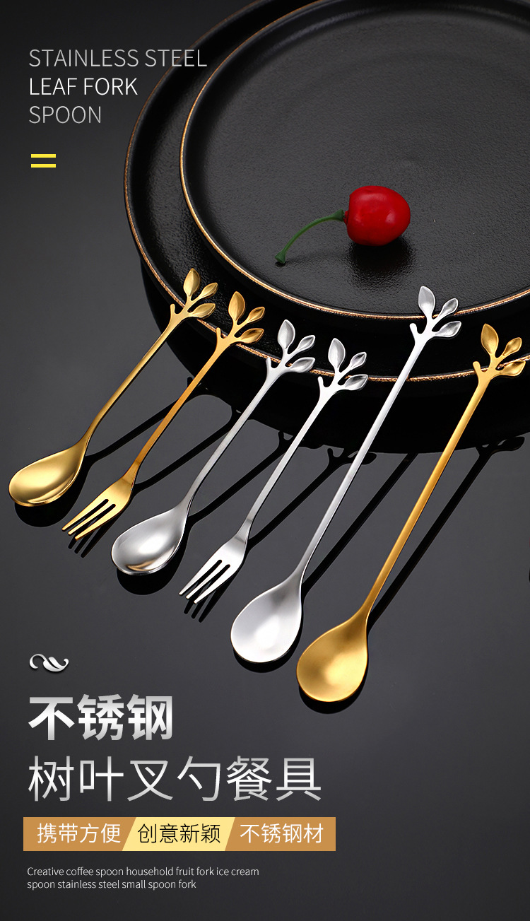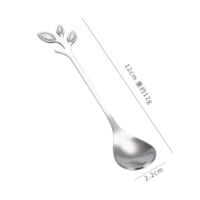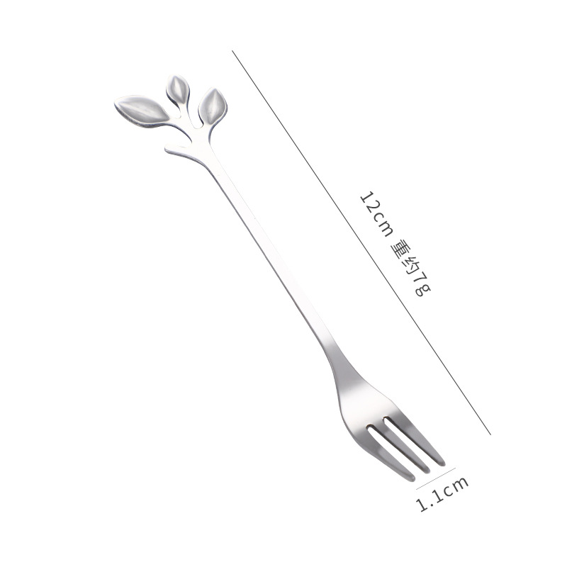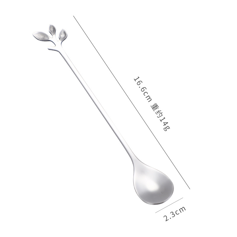 스테인레스 스틸 잎 숟가락 과일 디저트 포크 창조적 인 긴 손잡이 꿀 커피 혼합 숟가락 결혼 선물 숟가락