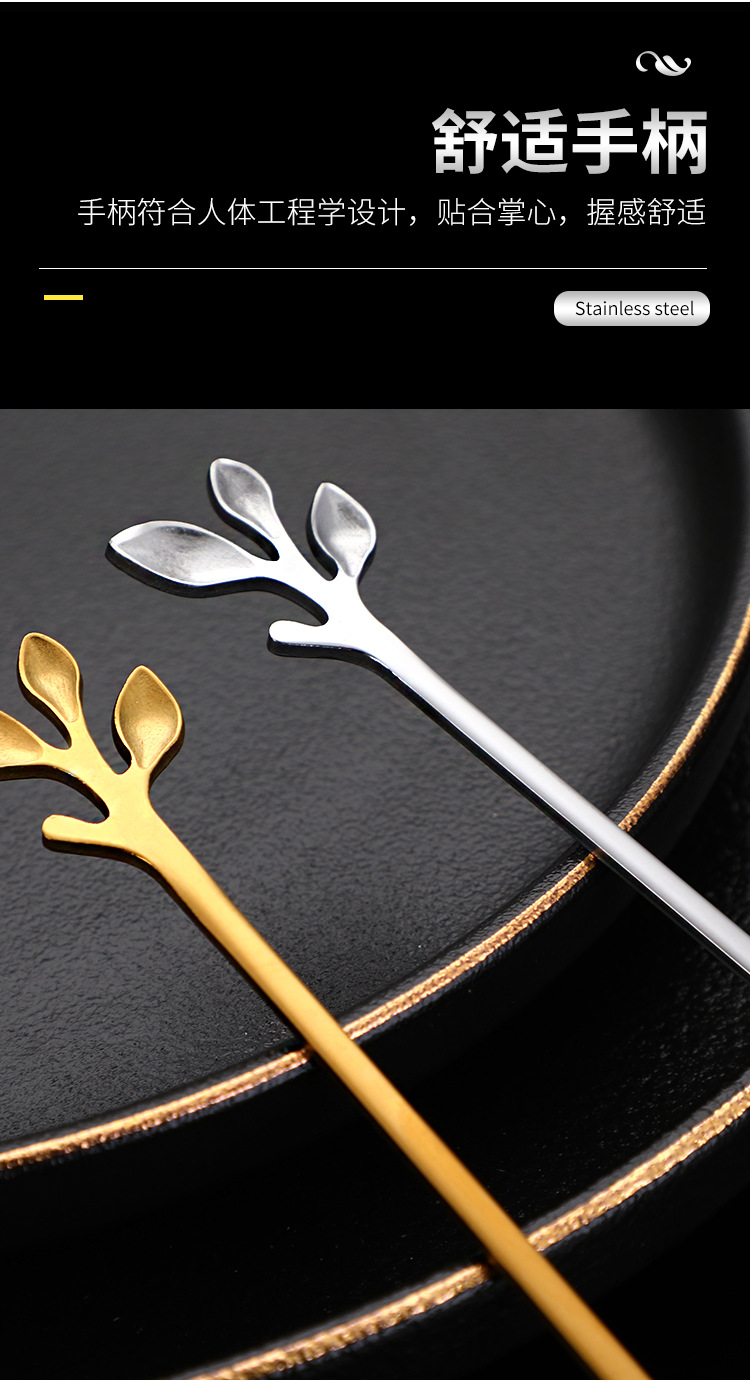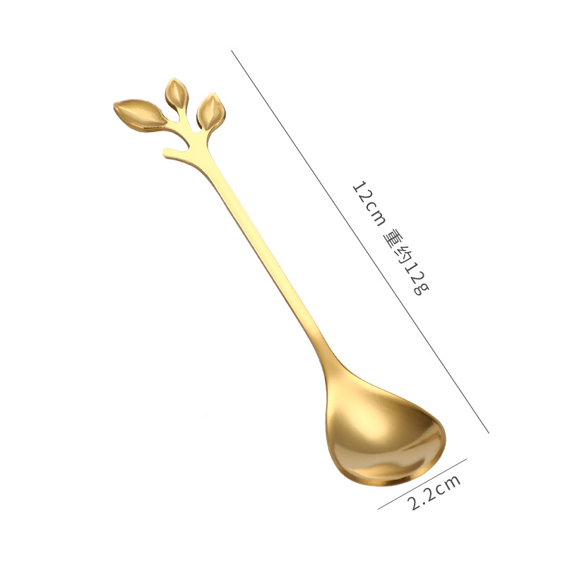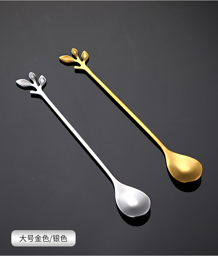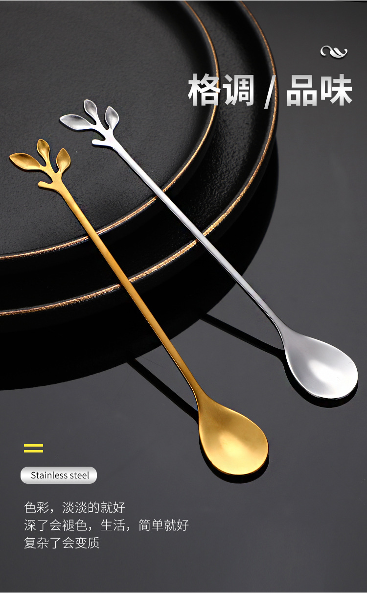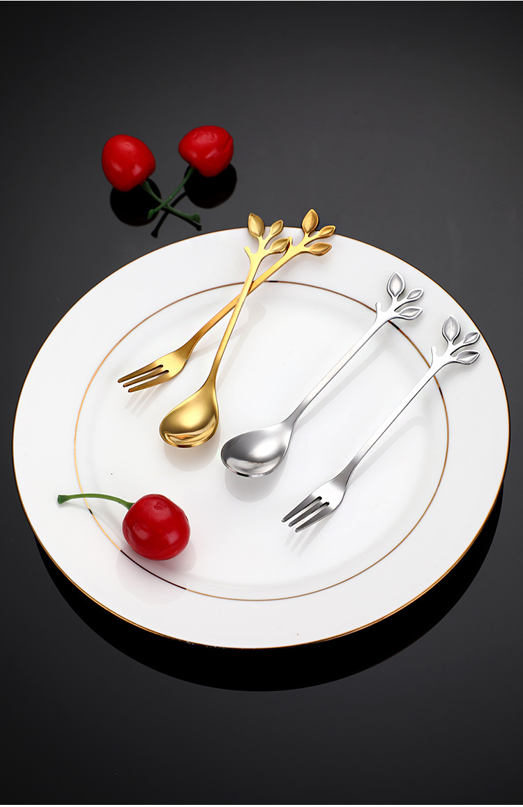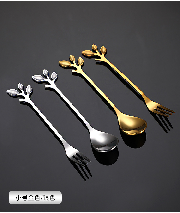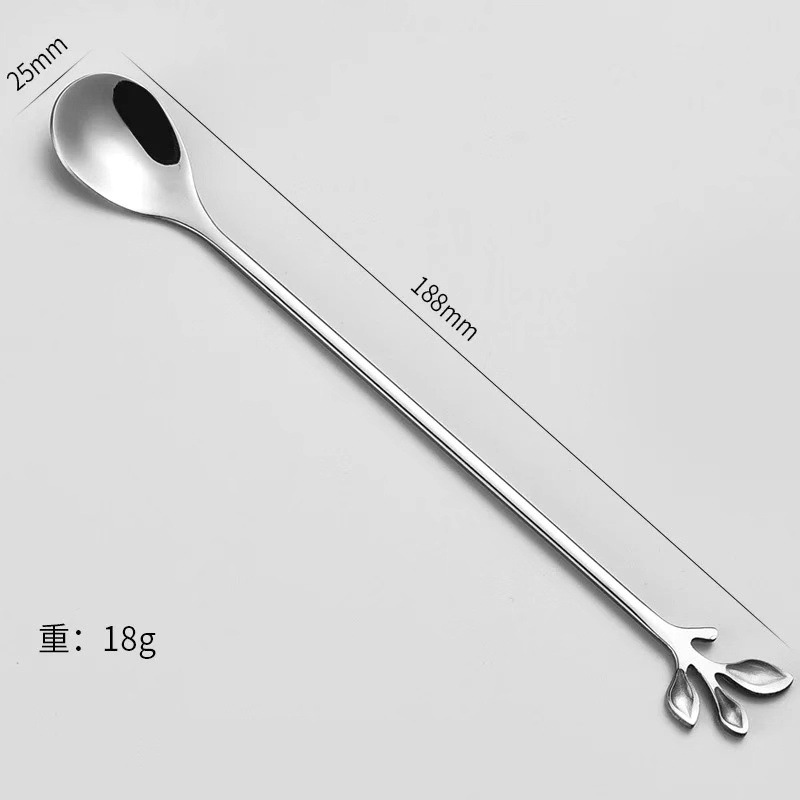 스테인레스 스틸 잎 숟가락 과일 디저트 포크 창조적 인 긴 손잡이 꿀 커피 혼합 숟가락 결혼 선물 숟가락