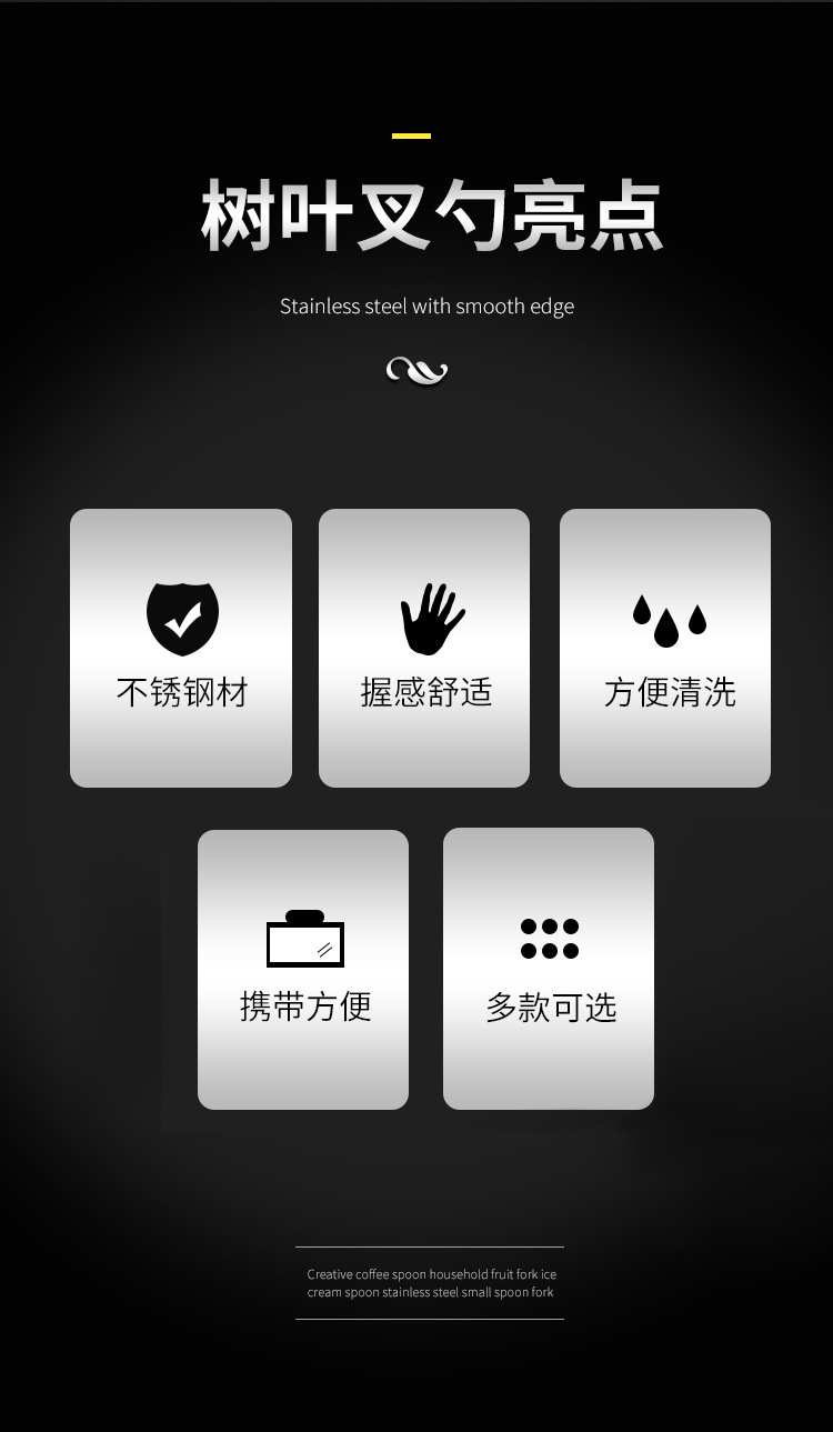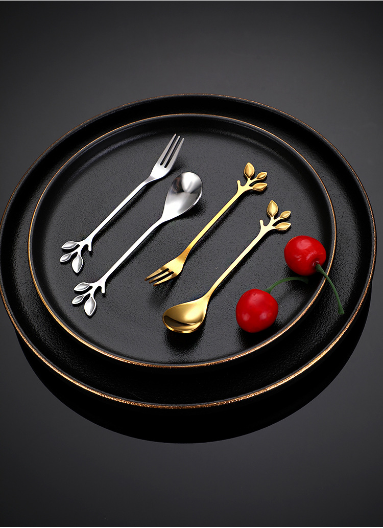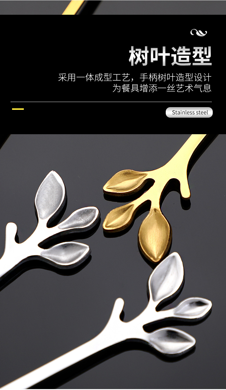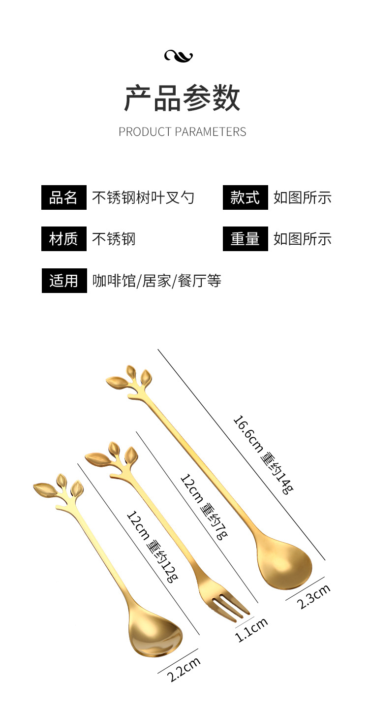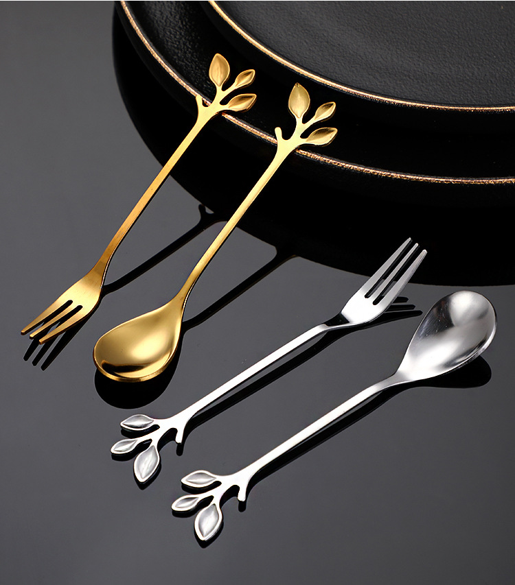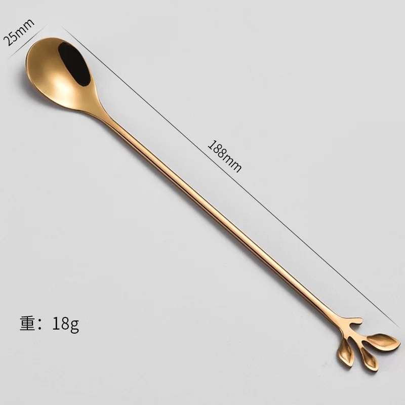 스테인레스 스틸 잎 숟가락 과일 디저트 포크 창조적 인 긴 손잡이 꿀 커피 혼합 숟가락 결혼 선물 숟가락