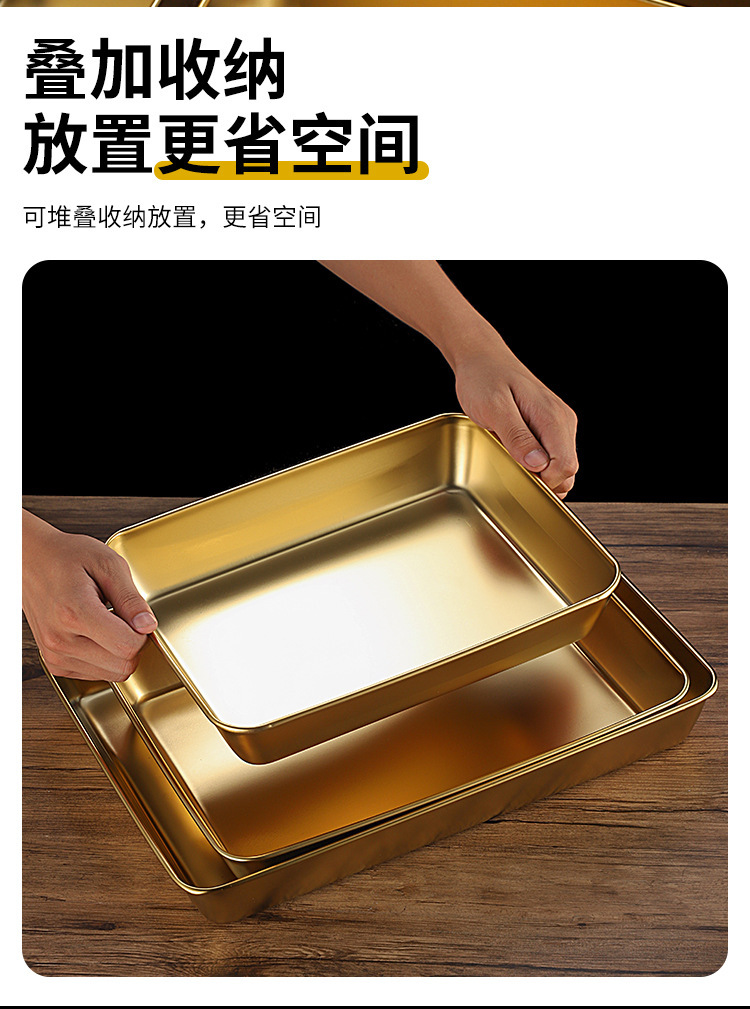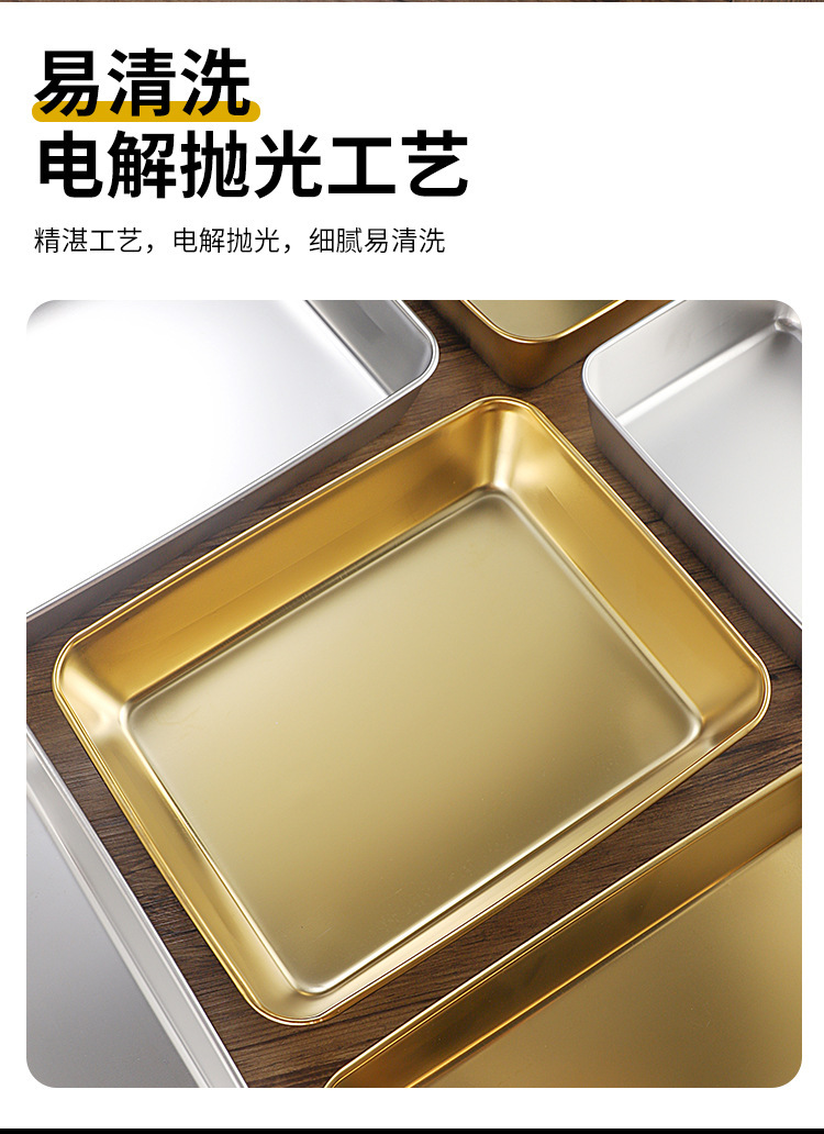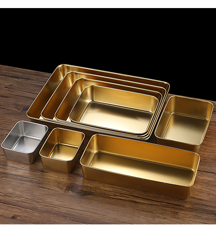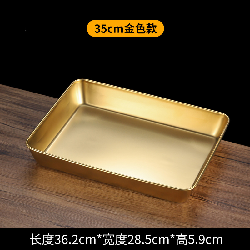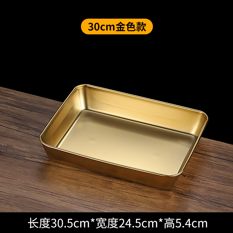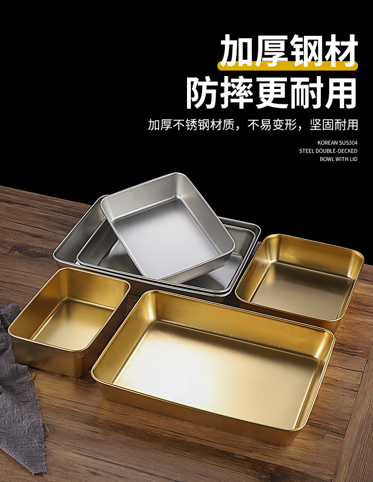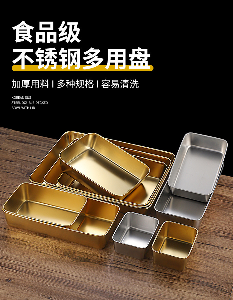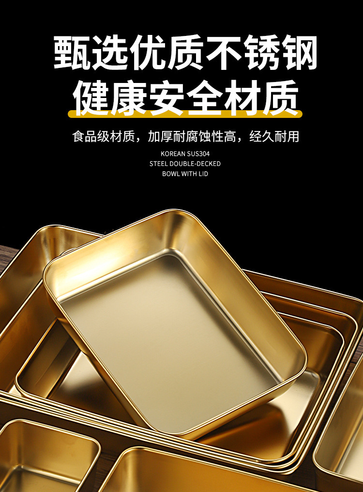 한국식 스테인레스 스틸 골든 트레이 스퀘어 플레이트 바베큐 플레이트 스낵 플레이트 핫 팟 플레이트 만두 플레이트 패스트 푸드 분지