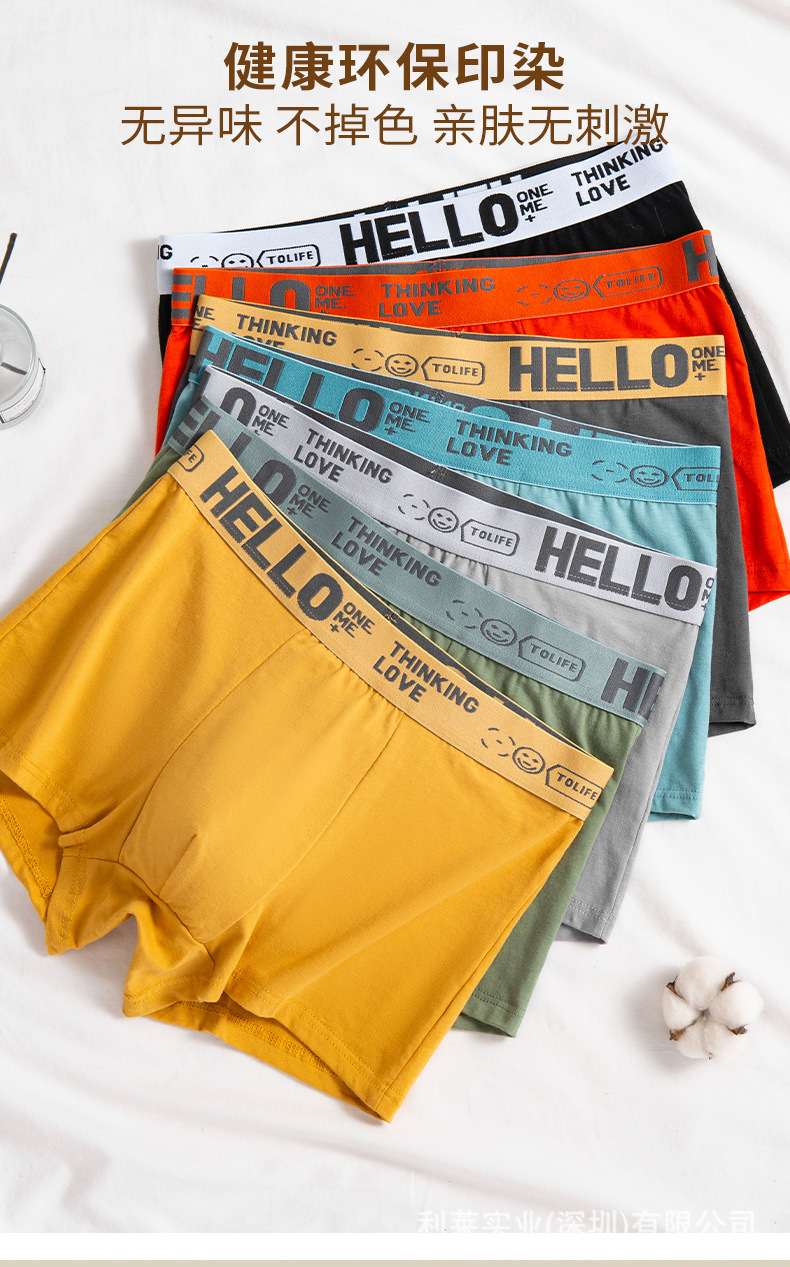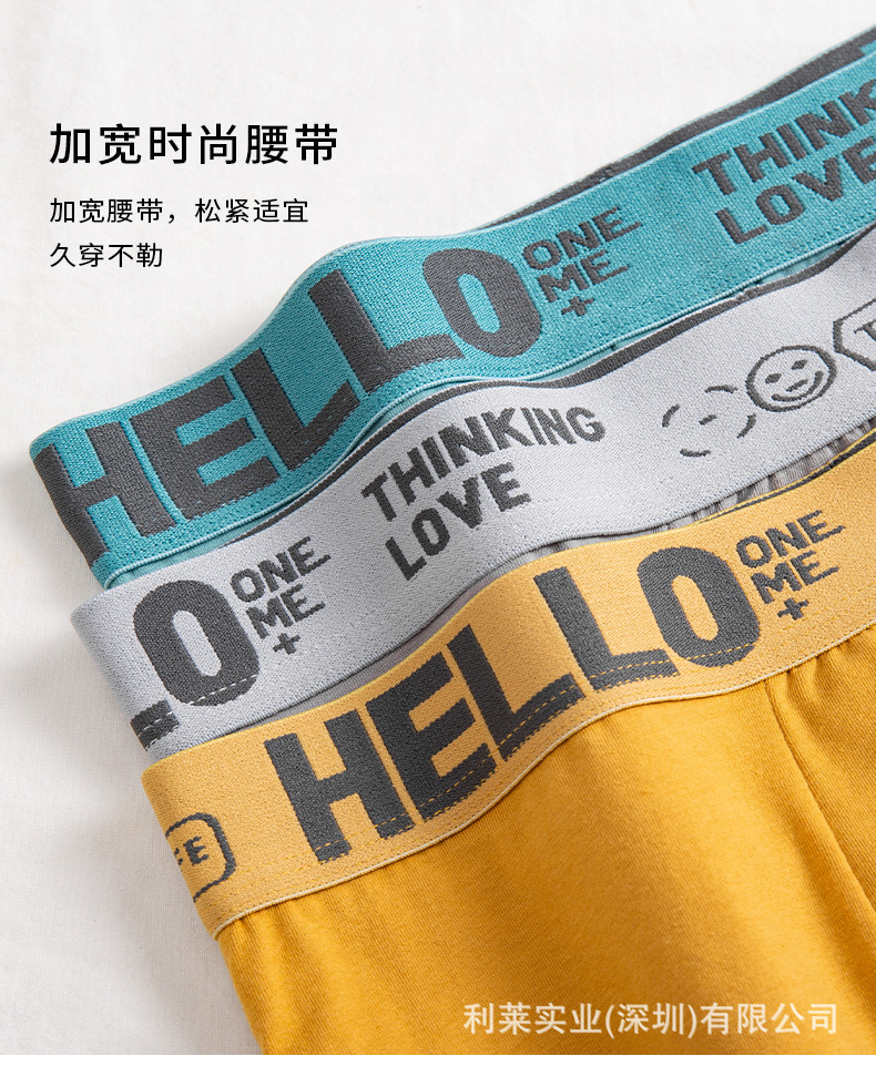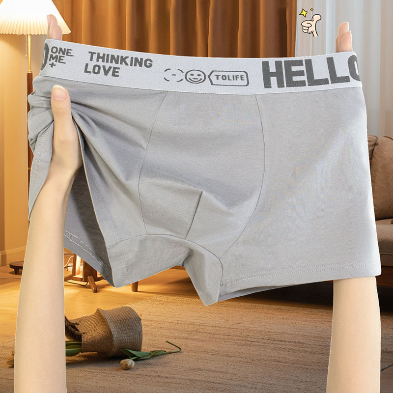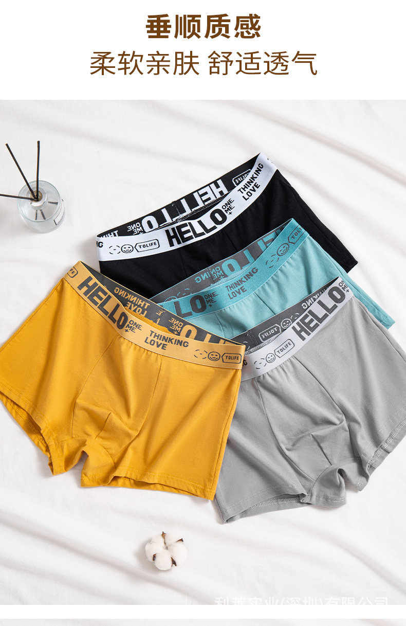 남성 속옷, 순면, 헐렁함, 통기성, 피부 친화적, 대형 복서 브리프, 청소년 스포츠 바지, HELLO 순면 바지