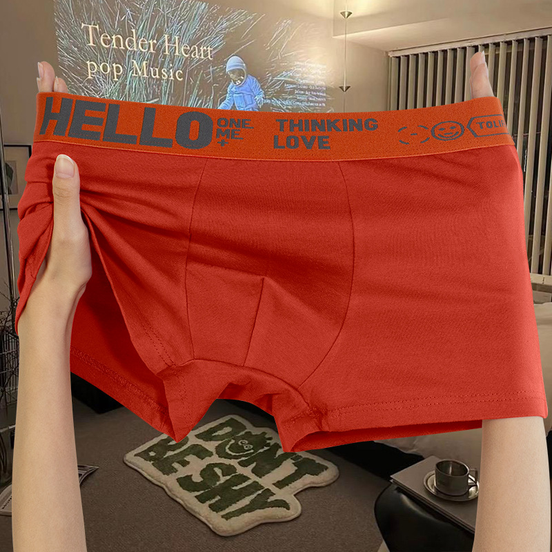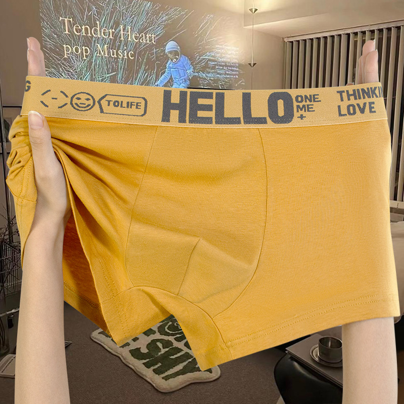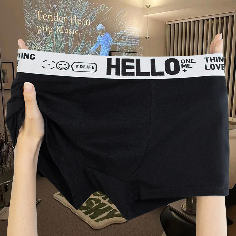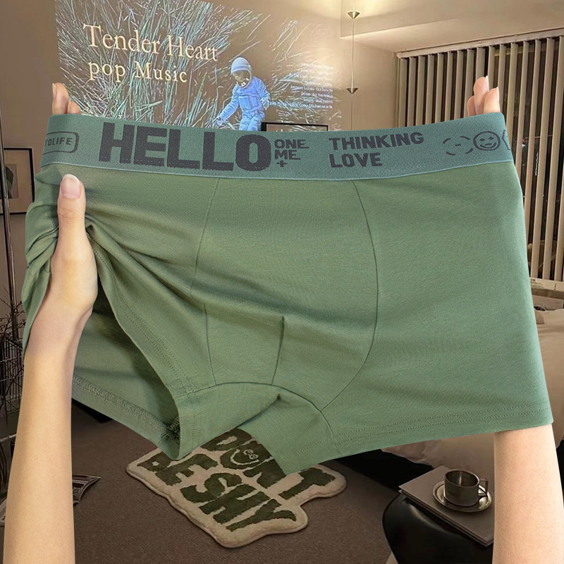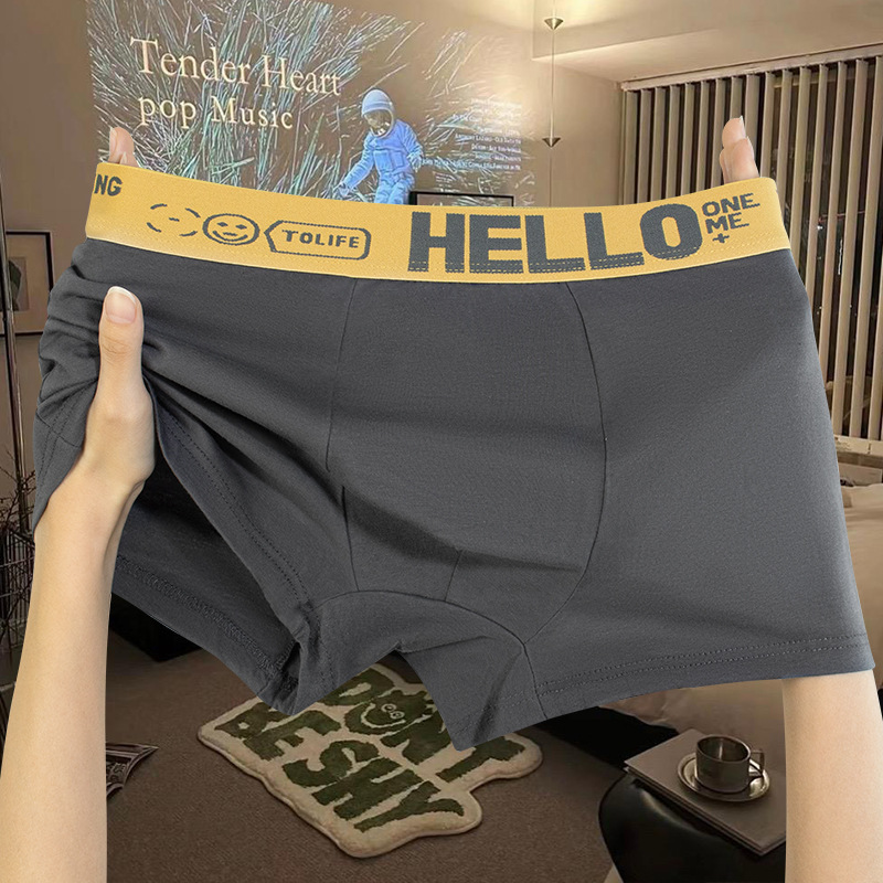 남성 속옷, 순면, 헐렁함, 통기성, 피부 친화적, 대형 복서 브리프, 청소년 스포츠 바지, HELLO 순면 바지