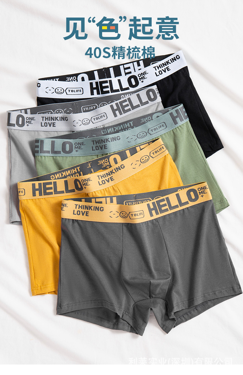 남성 속옷, 순면, 헐렁함, 통기성, 피부 친화적, 대형 복서 브리프, 청소년 스포츠 바지, HELLO 순면 바지스토어 가기