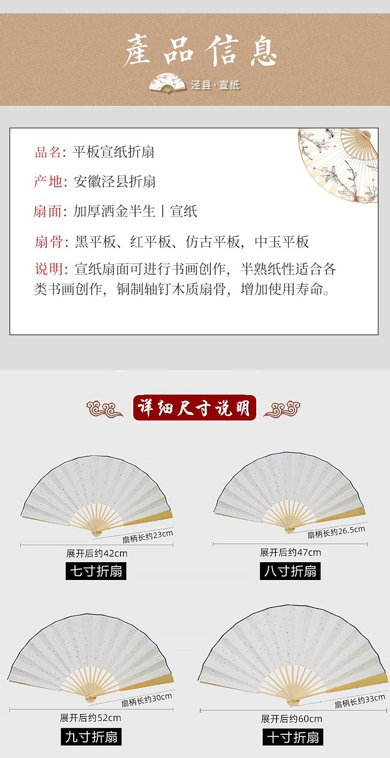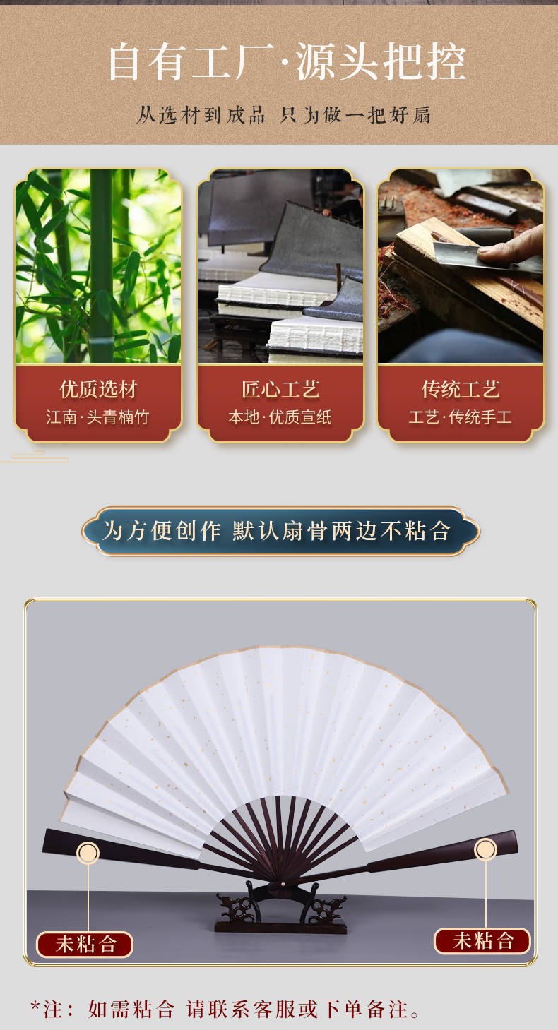 옻칠 그림 팬 비 표백 옻칠 Xuan 종이 접는 팬 중국 스타일 빈 수제 DIY 소재 대형 옻칠 안료 스텐드