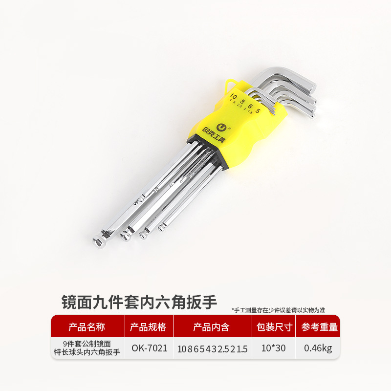 공장 도매 9피스 크롬 도금 육각 렌치 세트, 특대형 L자형 볼헤드 9피스 공구 세트스토어 가기