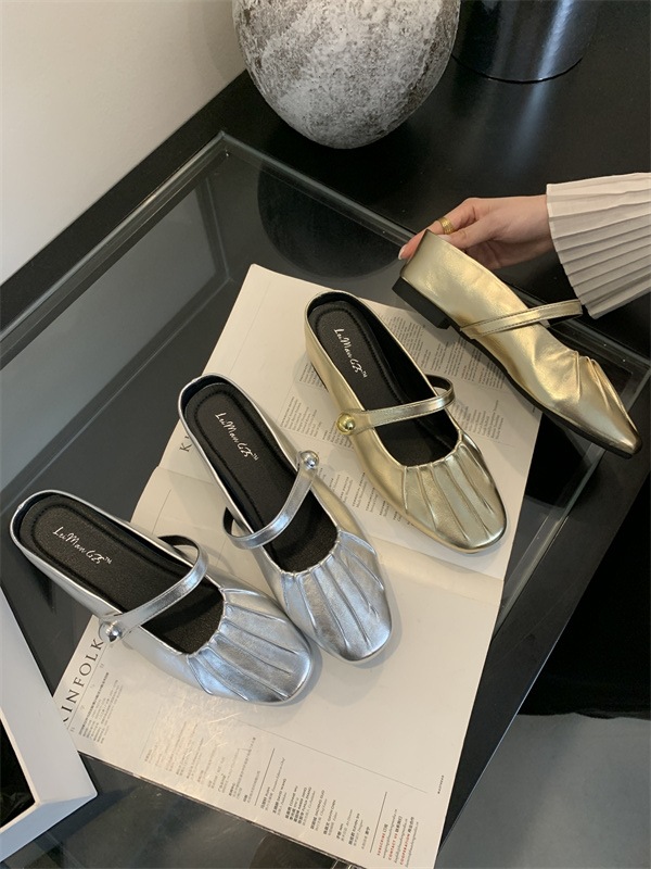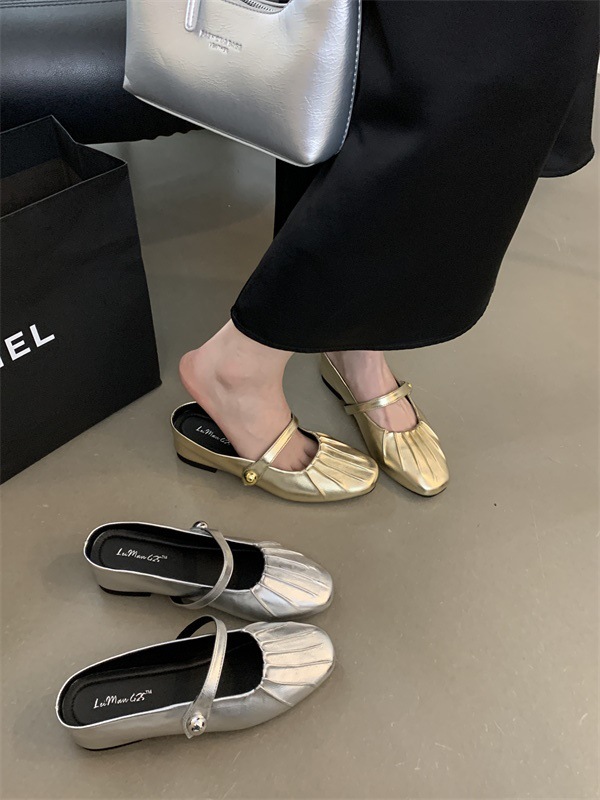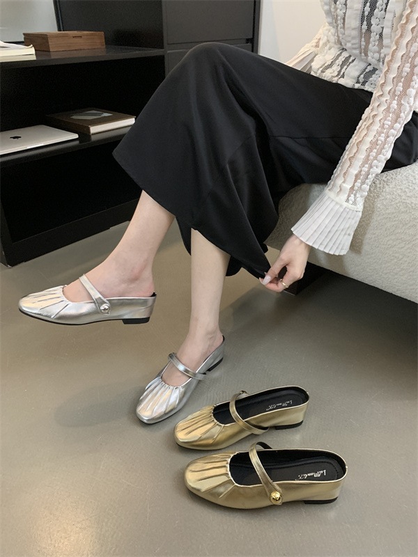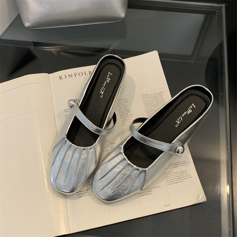 내부 강화 Baotou 하프 슬리퍼 여성 여름 외부 매듭 메리 제인 샌들 발레 스타일 여름 싱글 레이어 신발스토어 가기